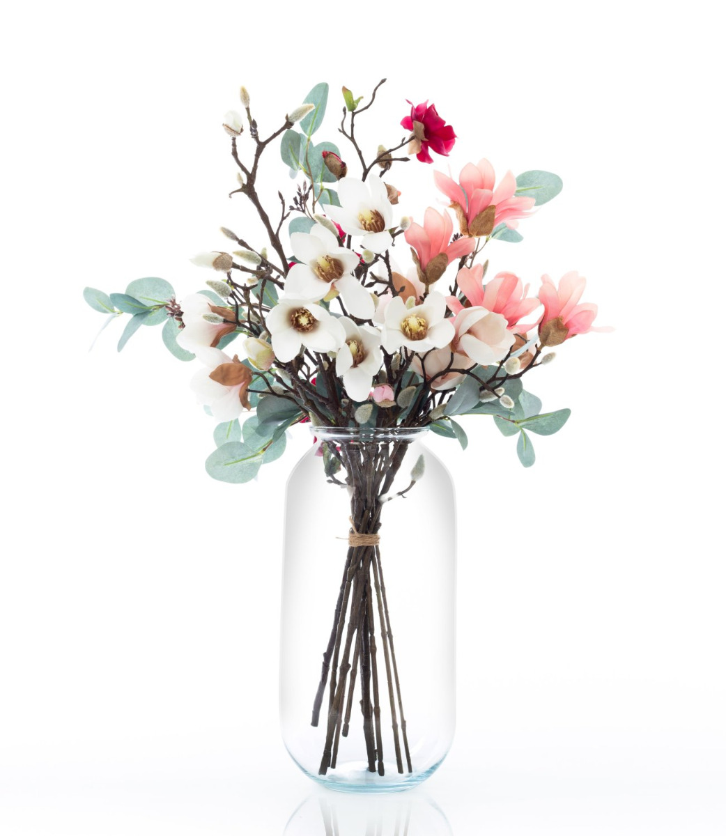 Umělá kytice z magnólií MERISA, bílo-růžová, 70cm, Ø40cm