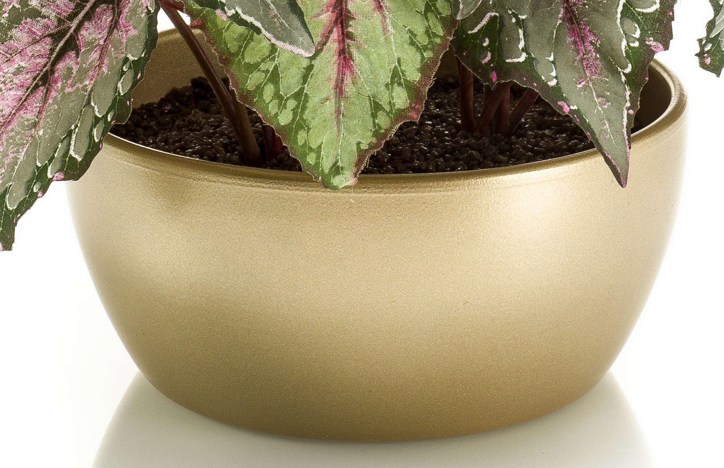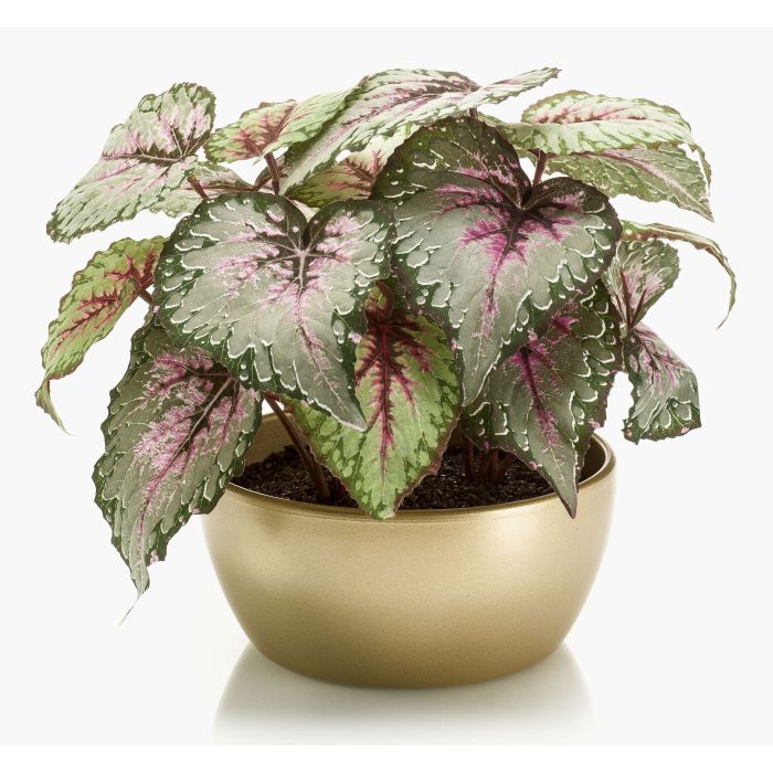 Umělá listová begonie KATRICE v keramickém květináči zlatá, fialovo-zelená, 25cm