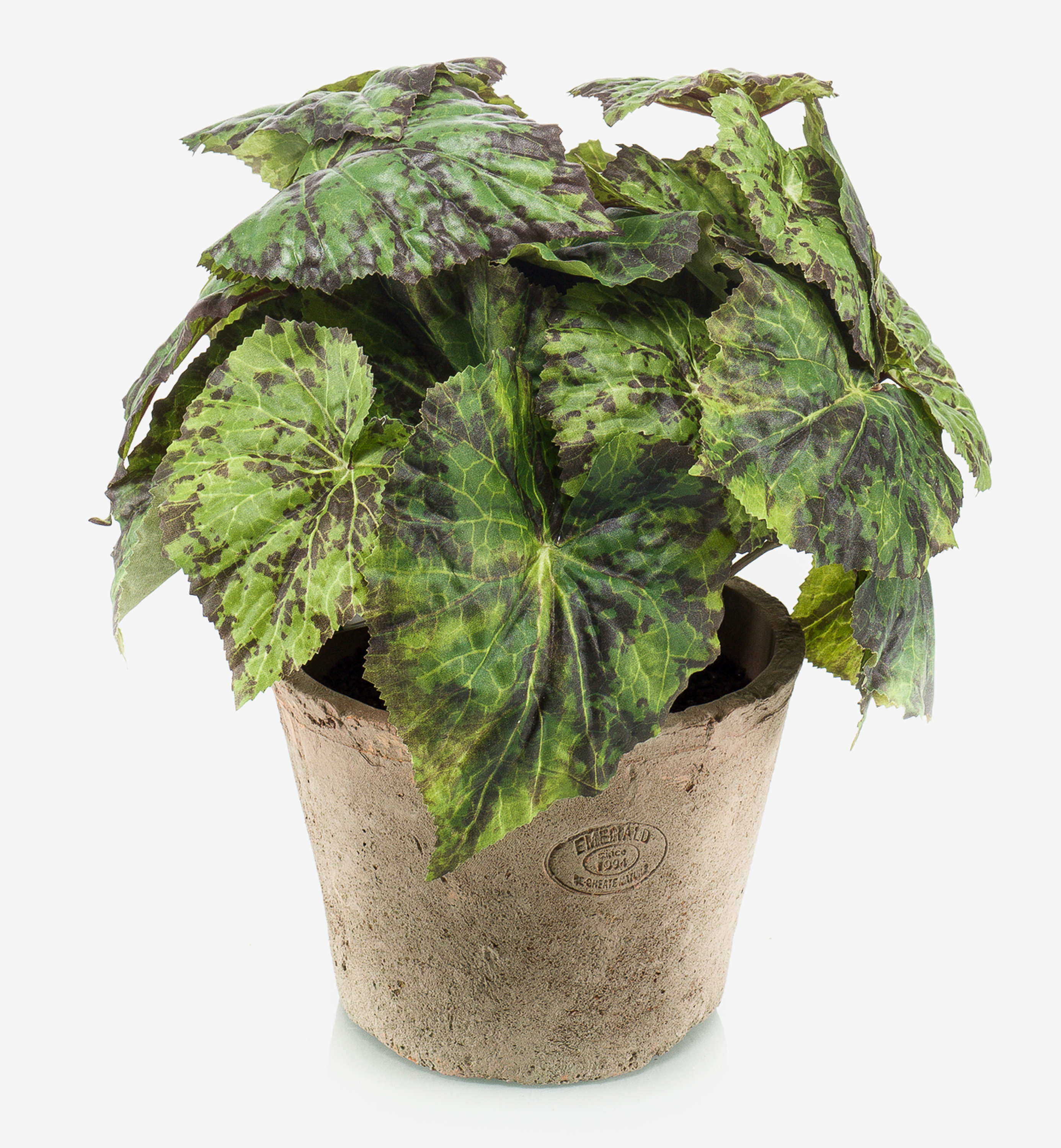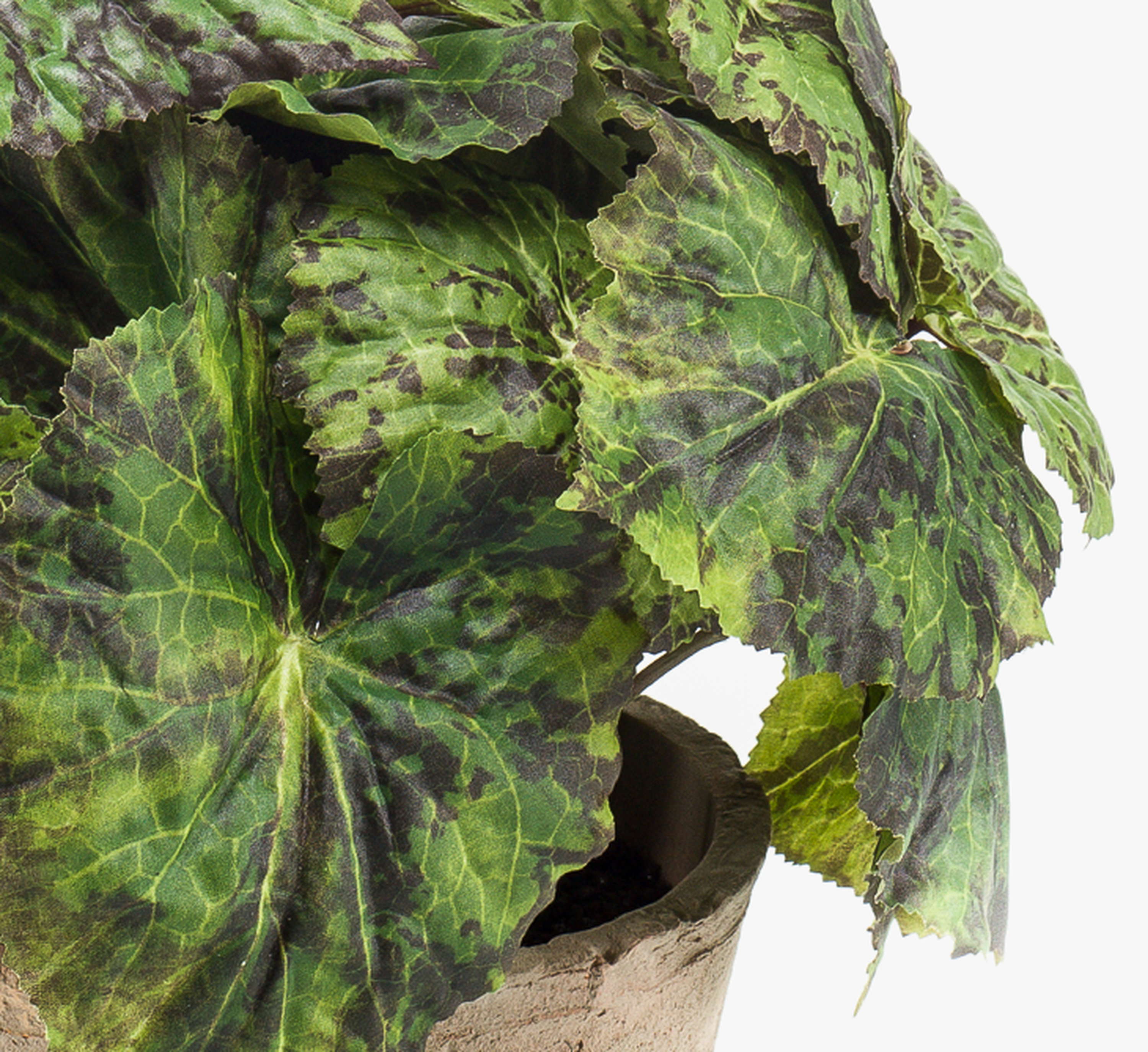 Umělá listová begonie MEIRA v terakotovém květináči, keřovitá, zeleno-černá, 25cm