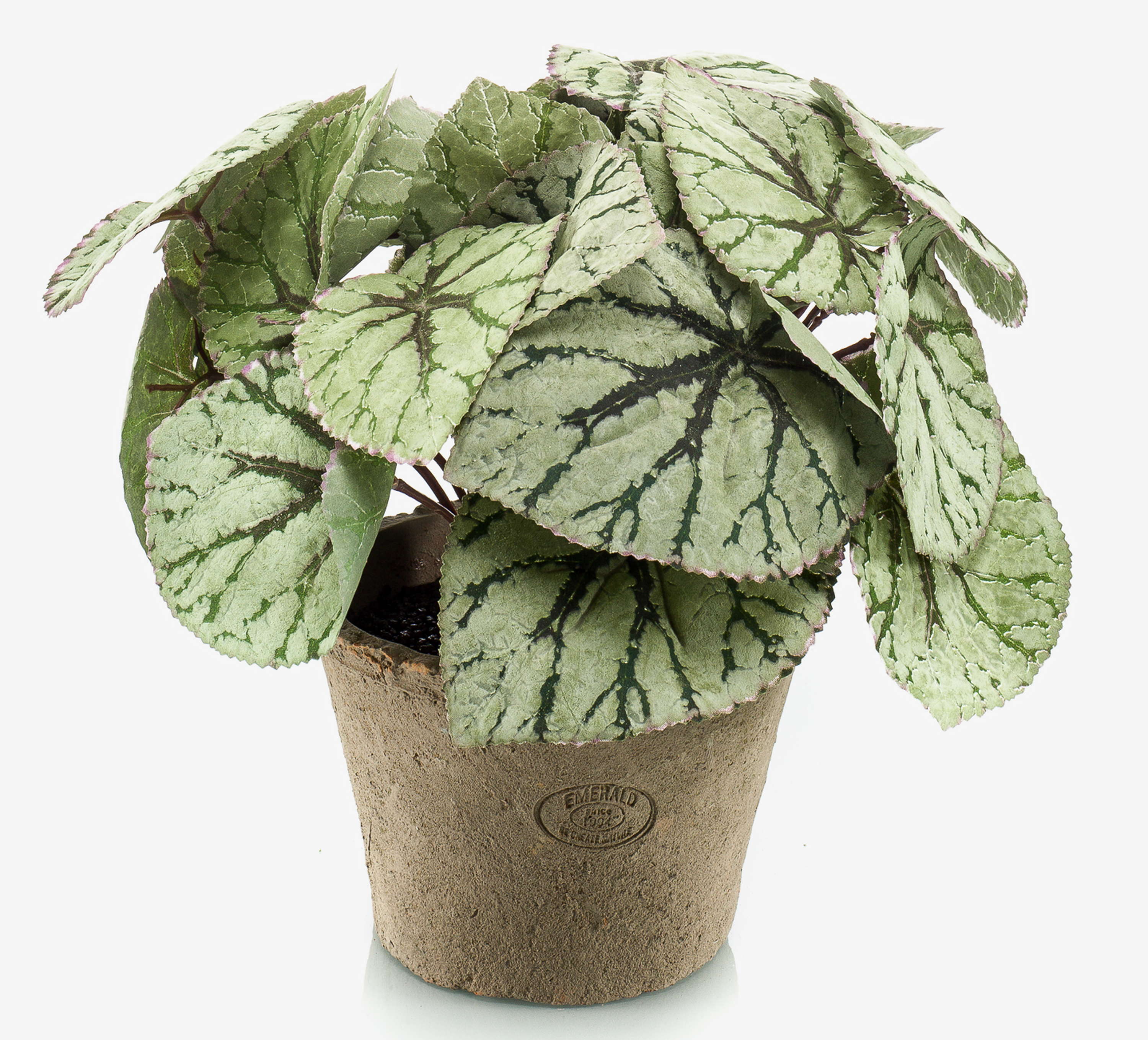 Umělá listová begonie MEIRA v terakotovém květináči, keřovitá, zelenošedá, 25cm