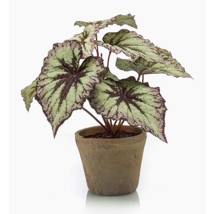 Umělá listová begonie MEIRA v terakotovém květináči, zeleno-fialová, 25cm