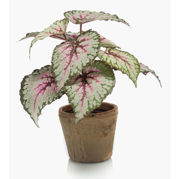 Umělá listová begonie MEIRA v terakotovém květináči, zeleno-růžová, 25cm