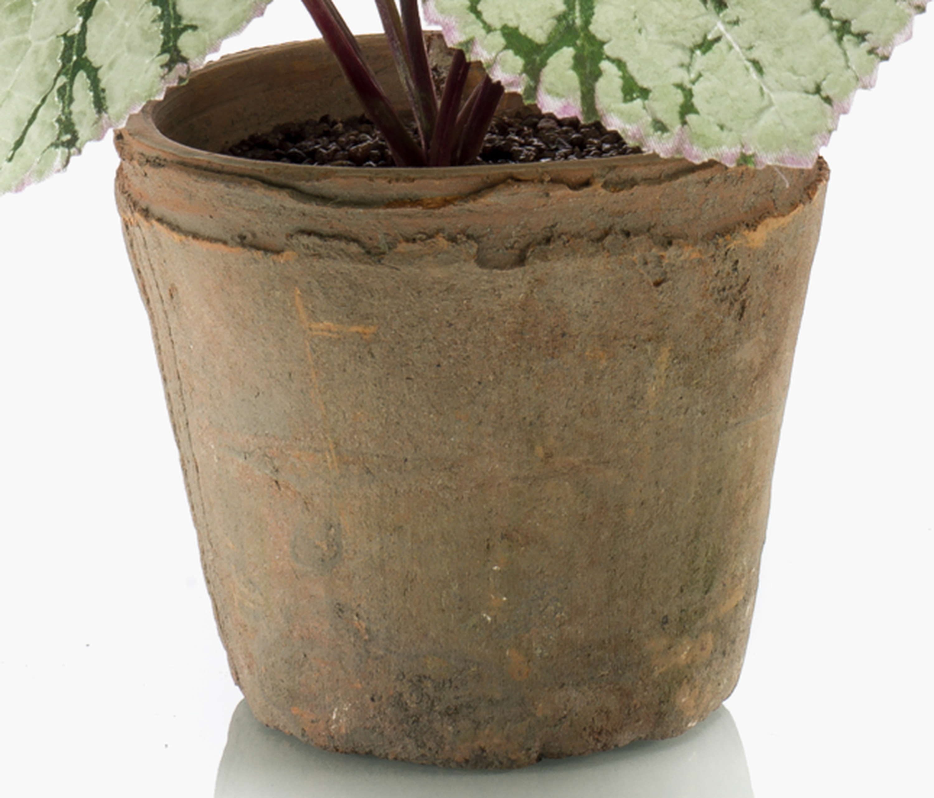 Umělá listová begonie MEIRA v terakotovém květináči, zelenošedá, 25cm