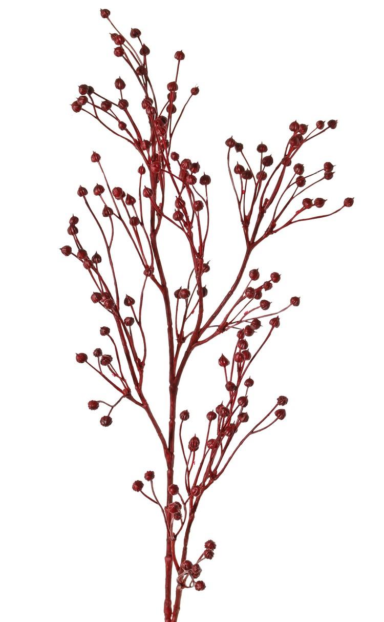 Umělá lněná větev QUOLL s hroty, červená, 65cm