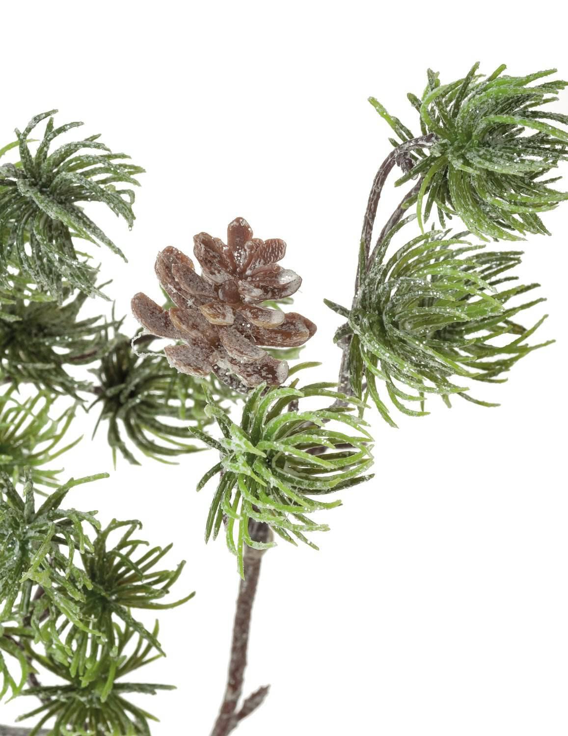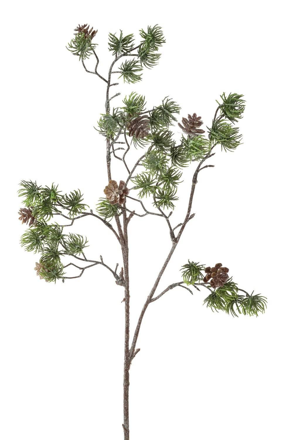 Umělá modřínová větev MENRIK s kužely, třpytivá, zmrzlá, zelenobílá, 65cm
