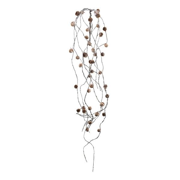 Umělá modřínová větev ZALMET se šiškami, závěsná, zmrzlá, bílá, 150cm