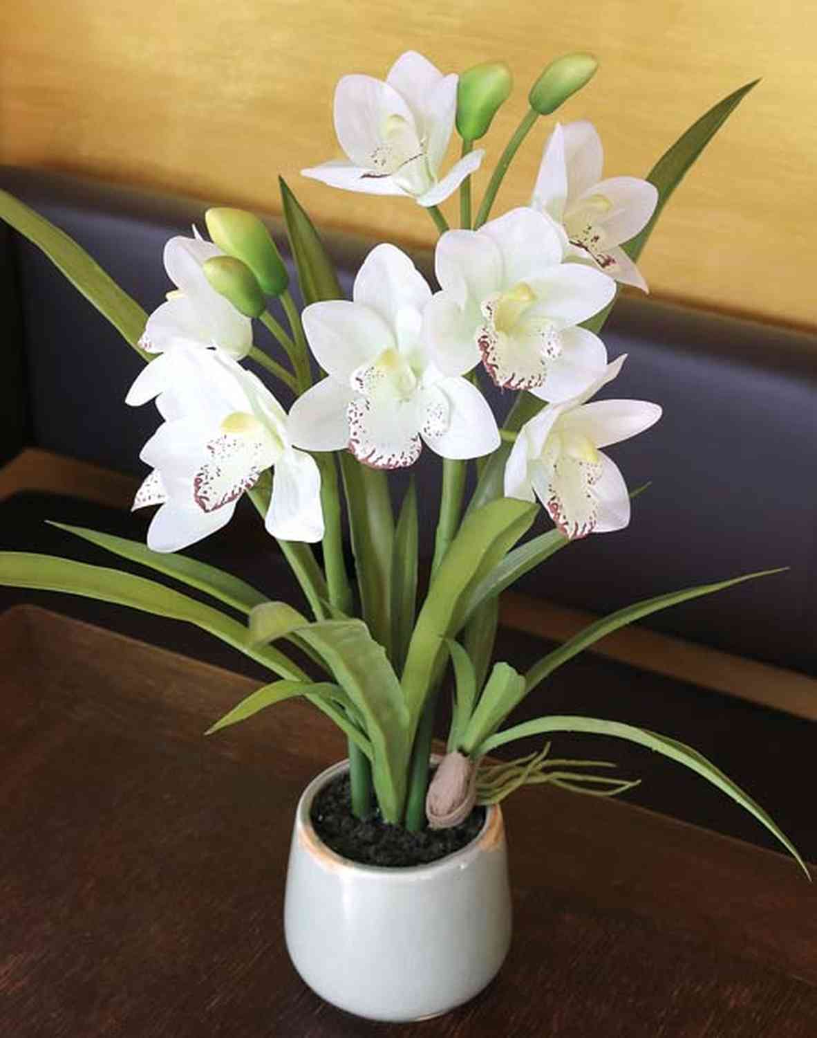 Umělá orchidej cymbidium NALA v keramickém květináči, krémová, 50cm