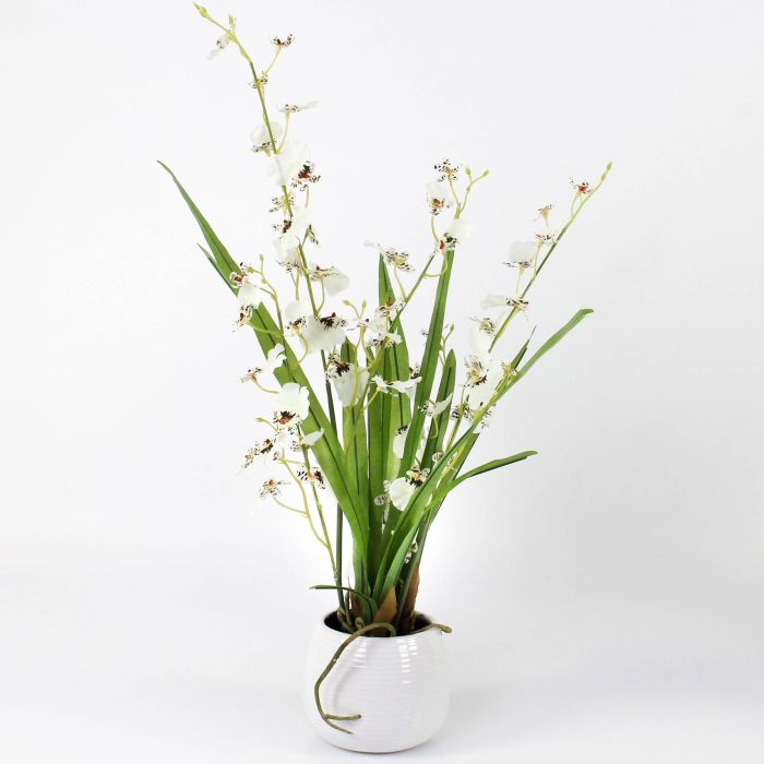 Umělá orchidej oncidium SHANIA, keramický květináč, bílo-hnědá, 50cm