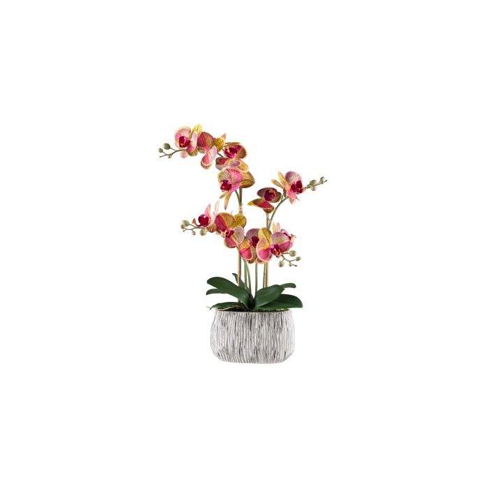 Umělá orchidej Phalaenopsis BLORVEN, cementový květináč, kořeny, žlutorůžová, 55cm