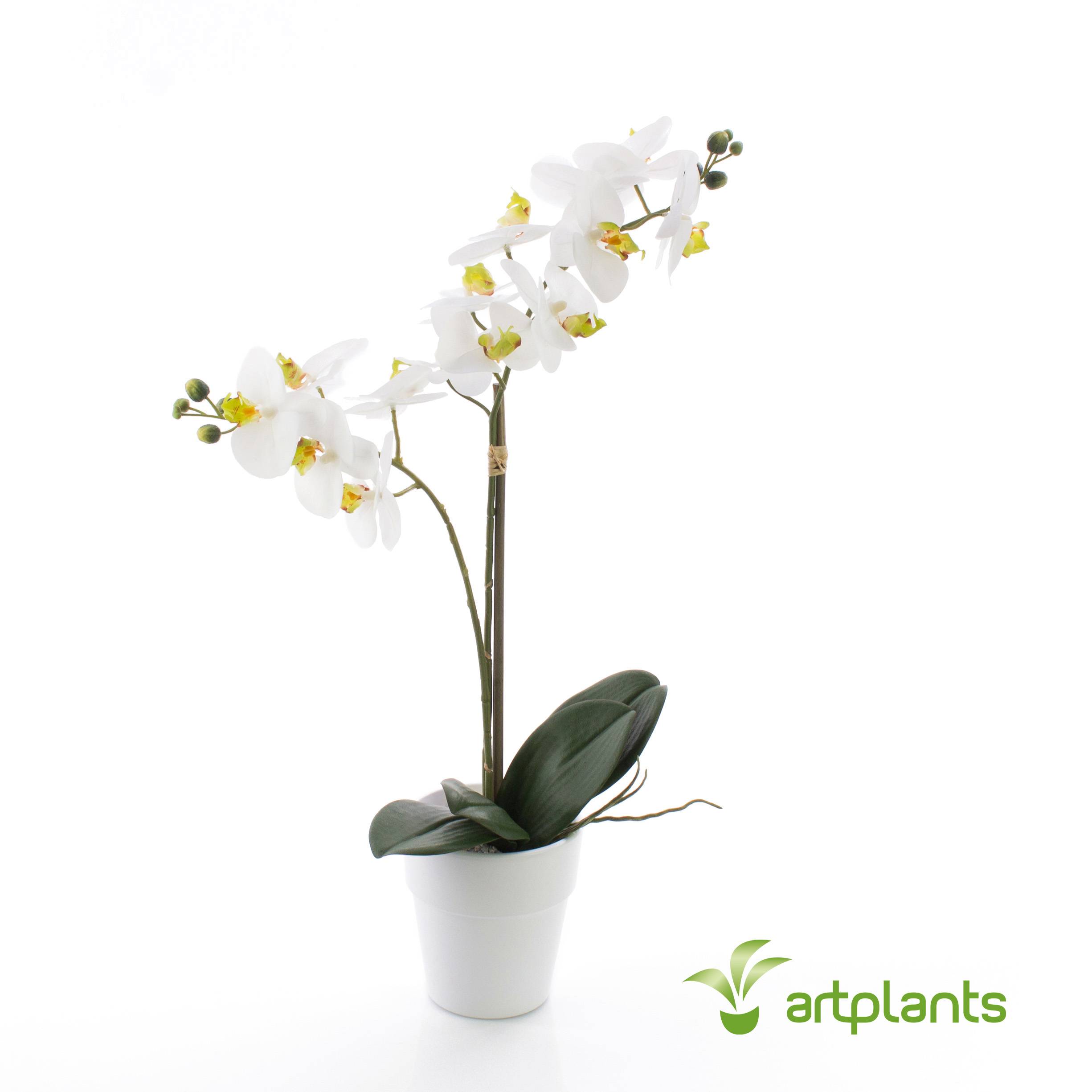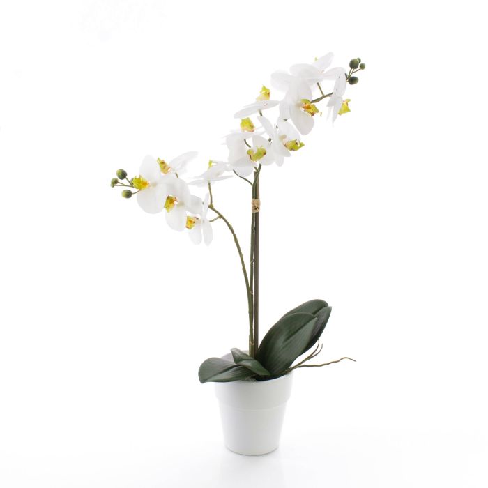 Umělá orchidej phalaenopsis CANDIDA v keramickém květináči, bílá, 65cm