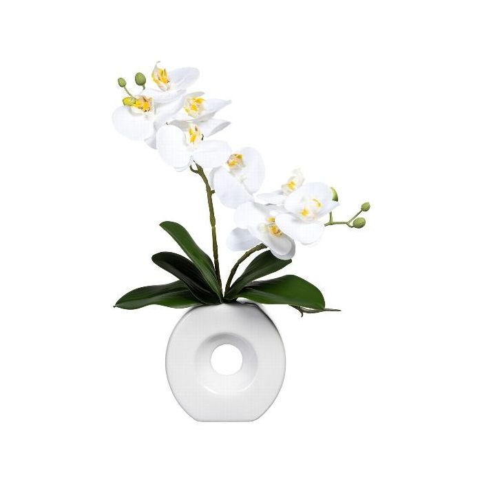 Umělá orchidej Phalaenopsis DRELMOR, keramická váza, kořeny, bílá, 35cm