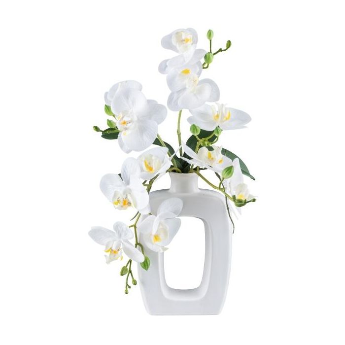 Umělá orchidej Phalaenopsis DRUKLON, keramická váza, kořeny, bílá, 40cm