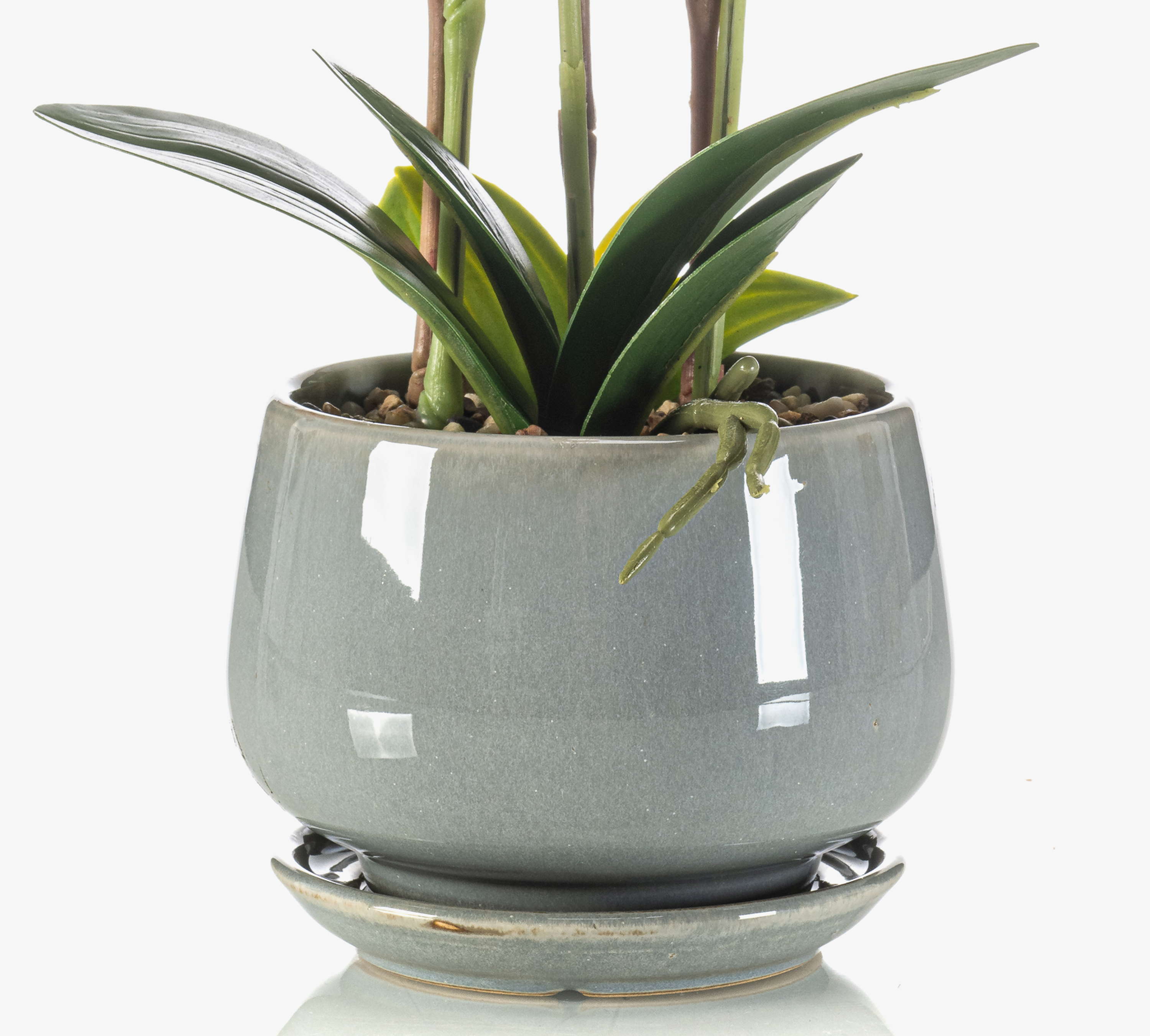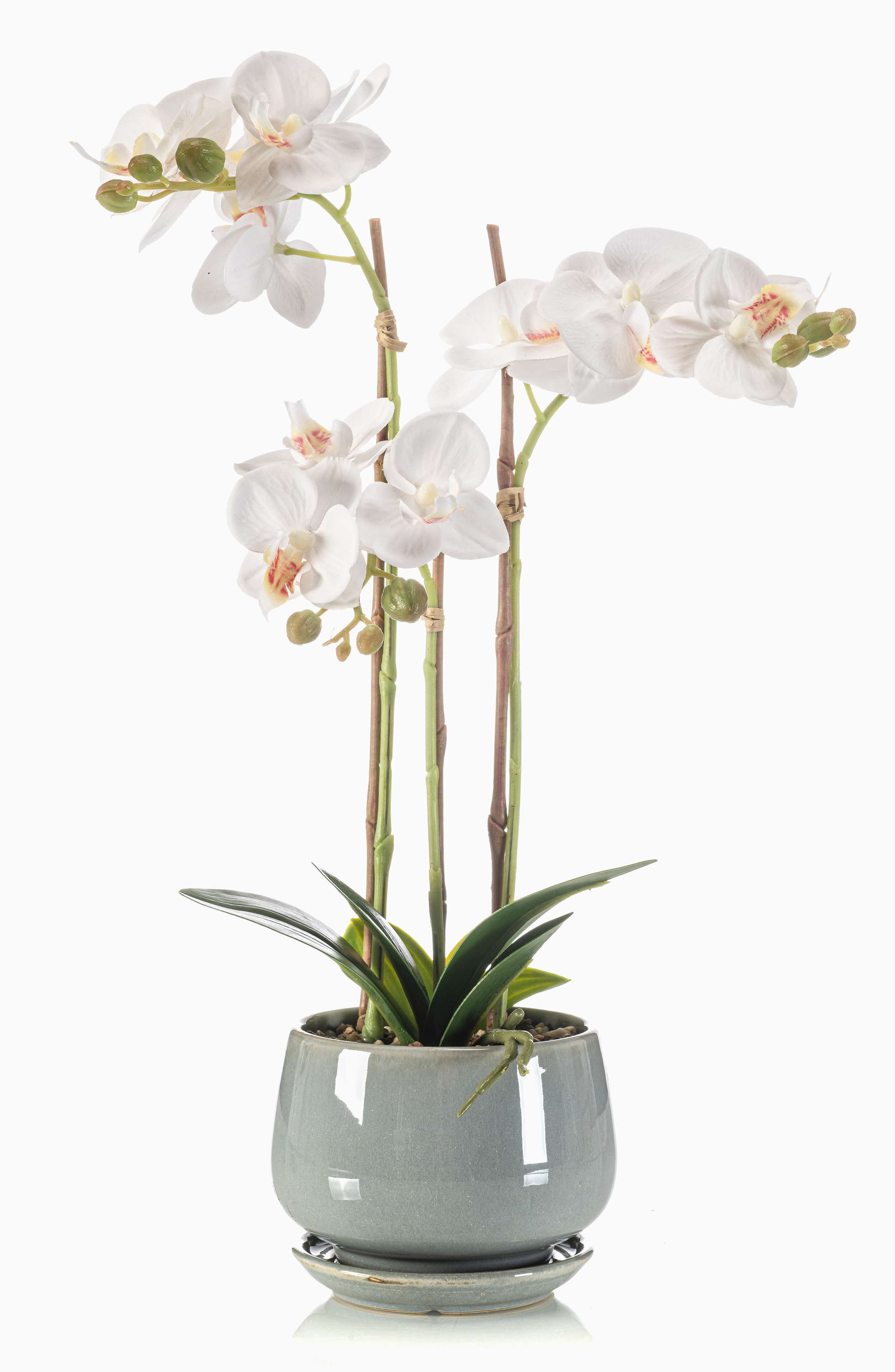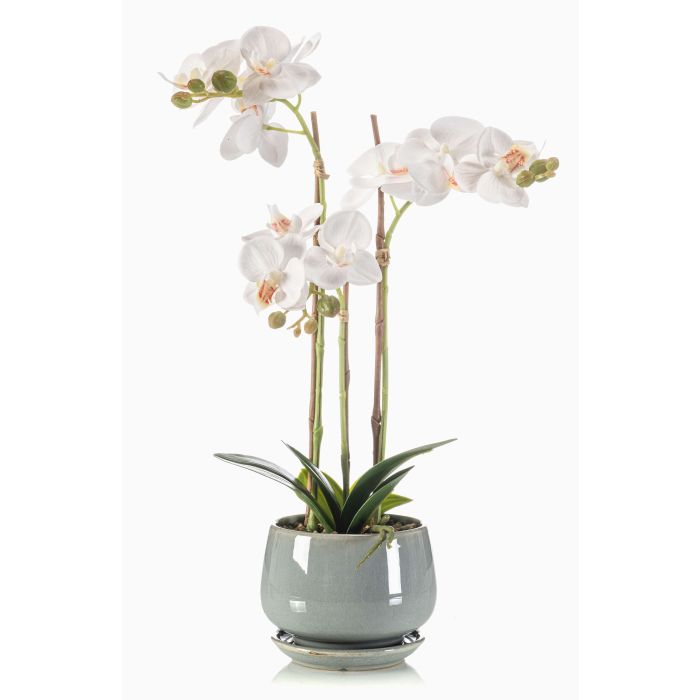 Umělá orchidej Phalaenopsis JOLANA v keramickém květináči, bílá, 45cm