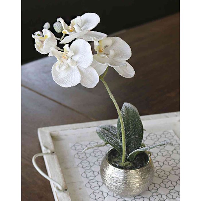 Umělá orchidej Phalaenopsis KAREN, dekorativní květináč, mražená, bílá, 35cm