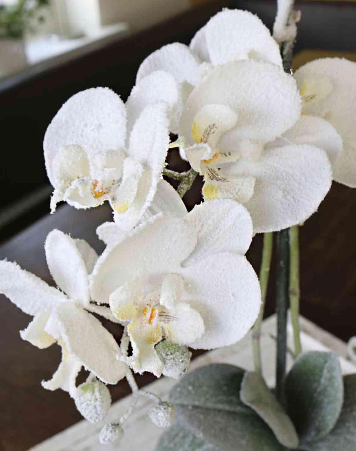 Umělá orchidej Phalaenopsis KAREN, dekorativní květináč, mražená, bílá, 50cm