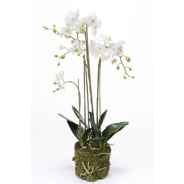 Umělá orchidej phalaenopsis kvarteto PABLA, v mechu, bílá, 80cm
