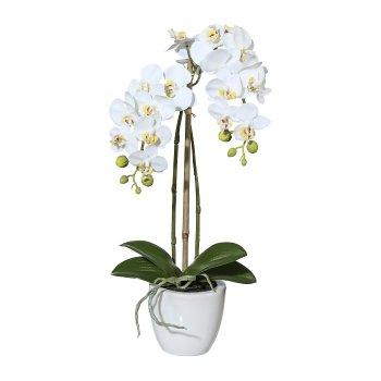 Umělá orchidej Phalaenopsis LARKEN v keramickém květináči, kořeny, bílá, 45cm