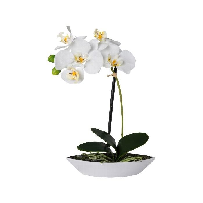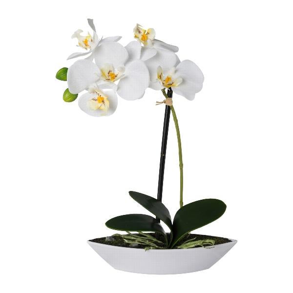 Umělá orchidej Phalaenopsis ORWAN, dekorativní květináč, kořeny, bílá, 30cm