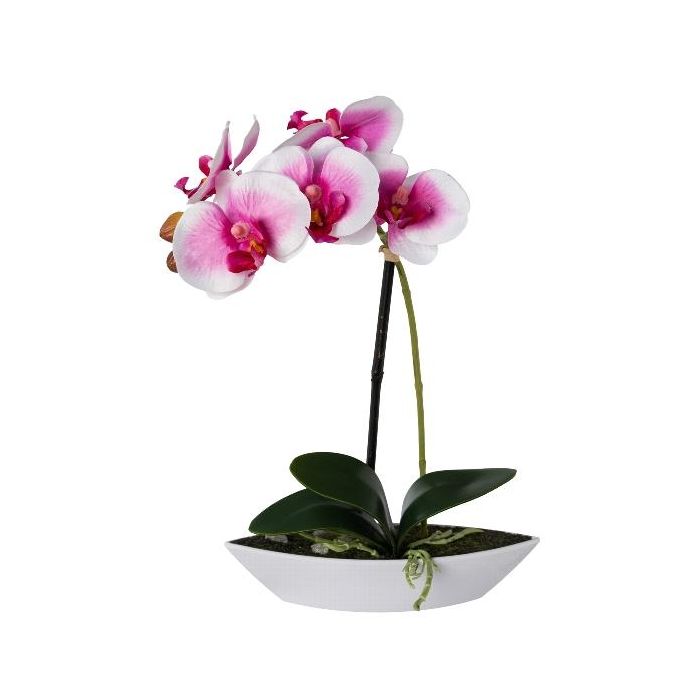 Umělá orchidej Phalaenopsis ORWAN, dekorativní květináč, kořeny, bílo-fialová, 30cm