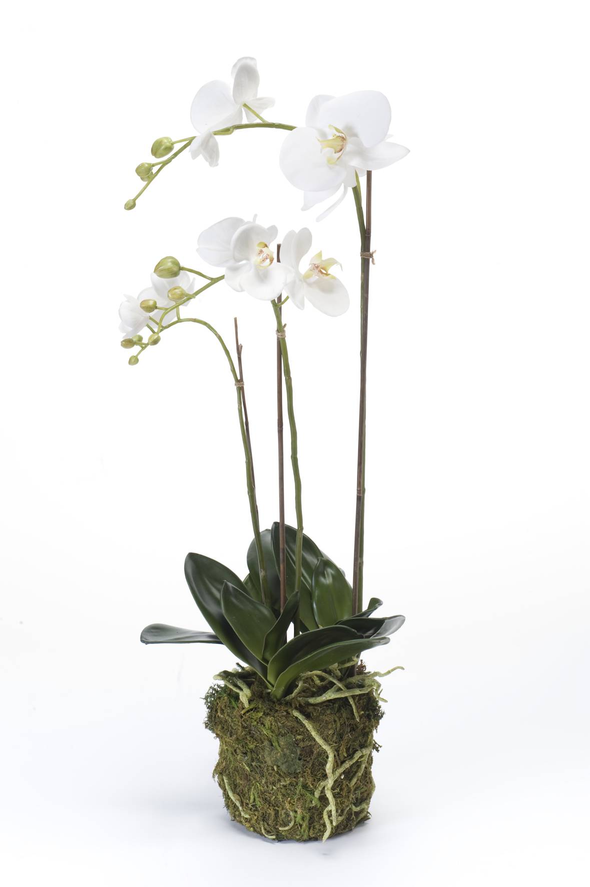 Umělá orchidej phalaenopsis PABLA, v mechu, bílá, 70cm