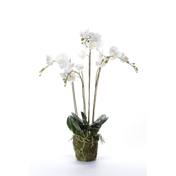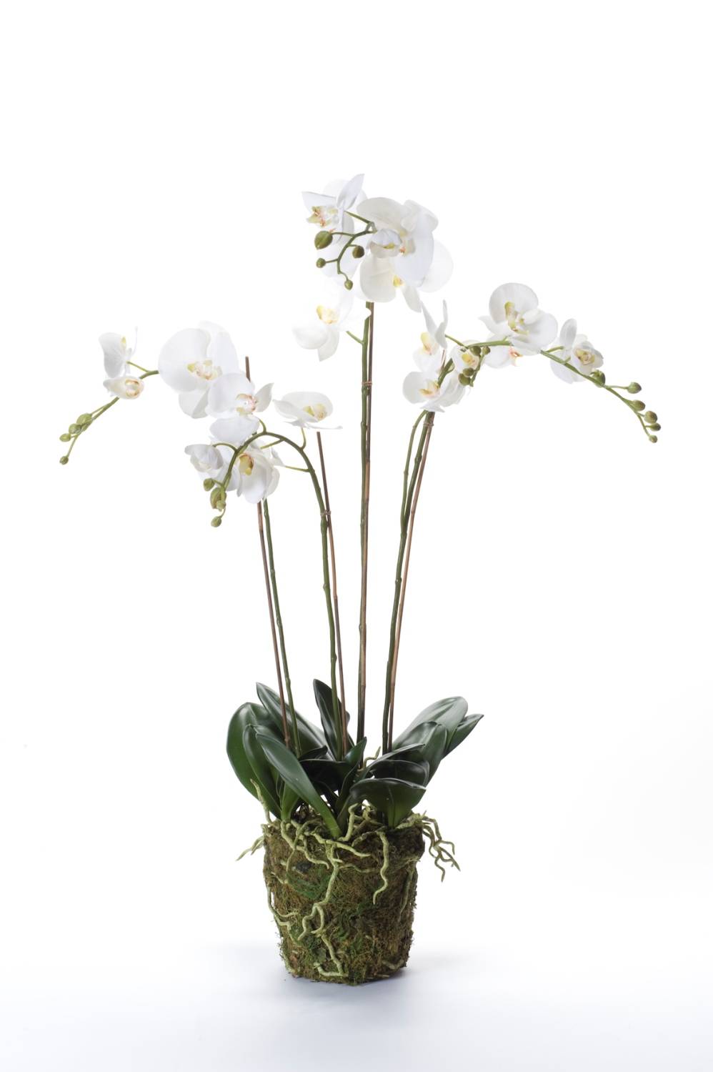 Umělá orchidej phalaenopsis PABLA, v mechu, bílá, 90cm