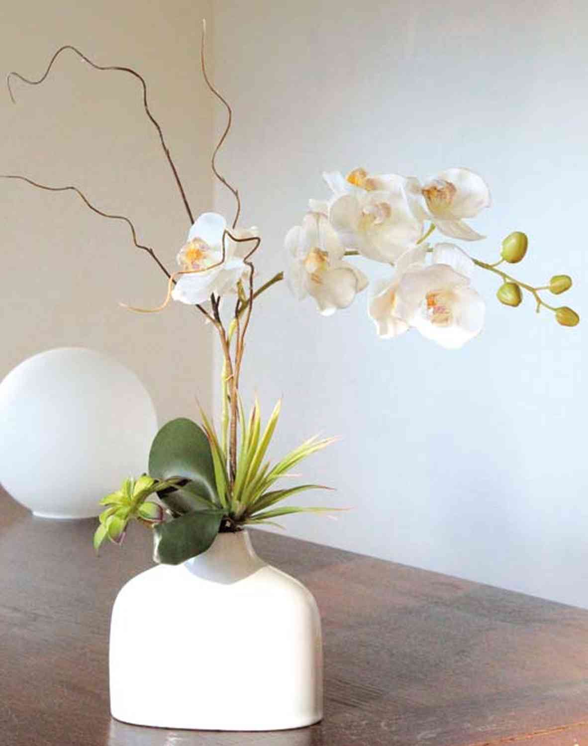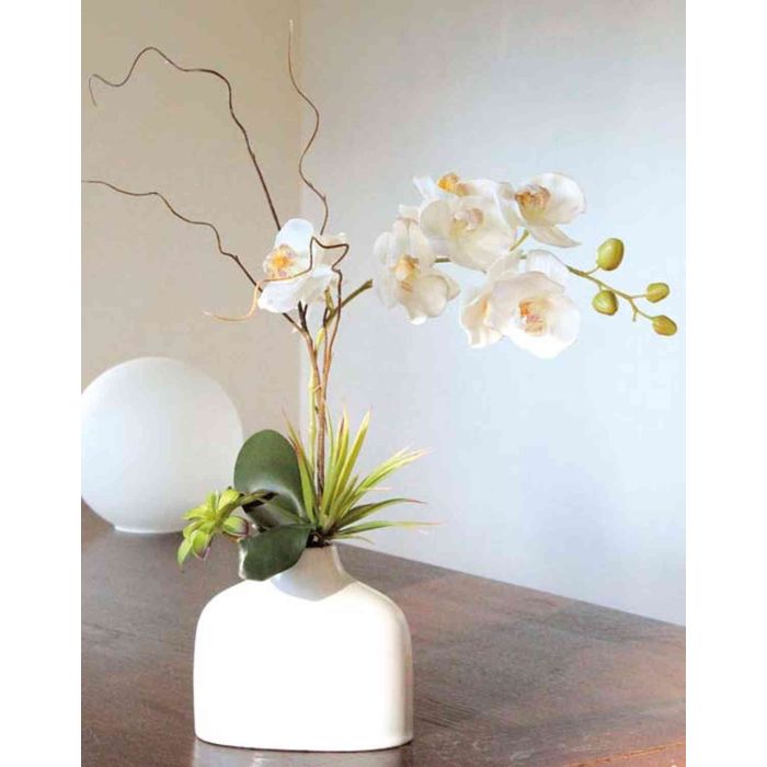 Umělá orchidej Phalaenopsis TIALDA, sukulenty, keramická váza, bílá, 50cm