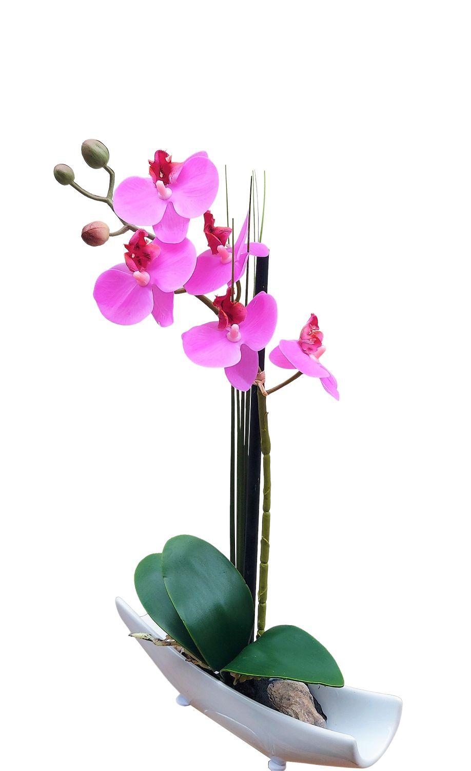 Umělá orchidej Phalaenopsis YANNIE, rákos, keramická miska, cerise, 30cm