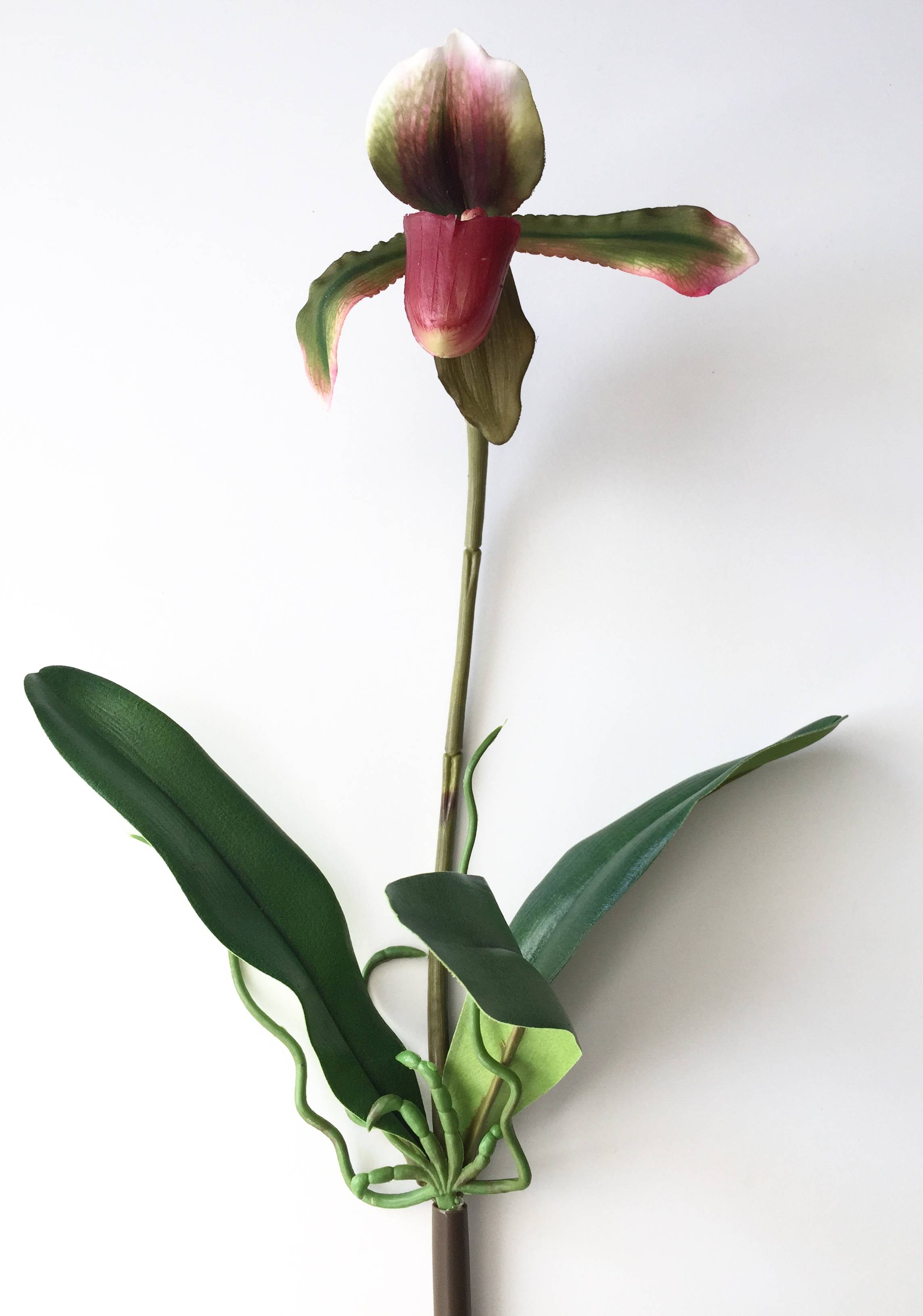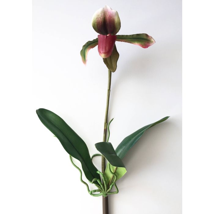 Umělá orchidej střevíčník VELANA, se zápichem, fialovo-zelená, 40cm