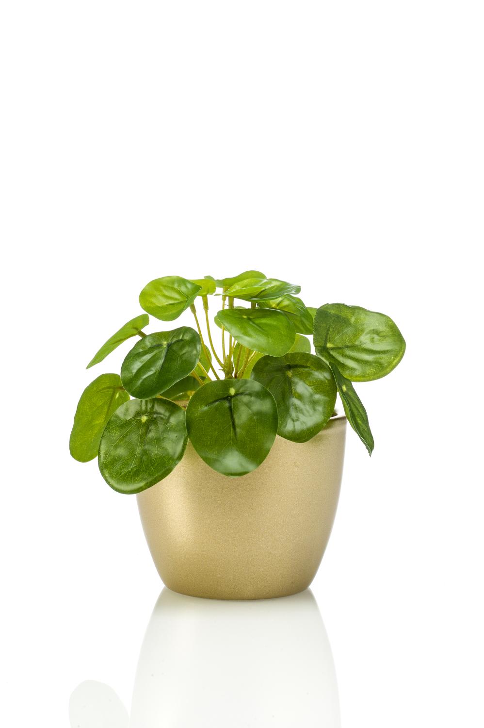 Umělá pilea SYBIL v keramickém zlatém květináči, zelená, 13cm