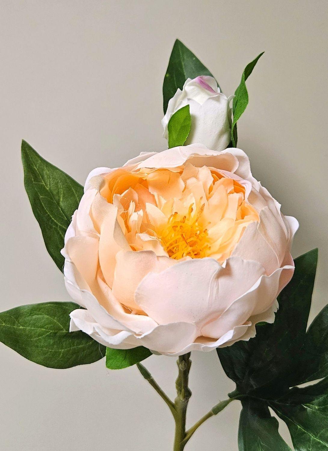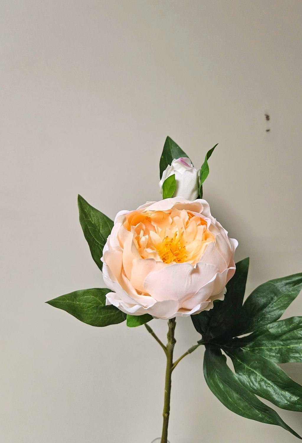 Umělá pivoňka FYRFAR, polootevřená, smetanovo-meruňková, 60cm