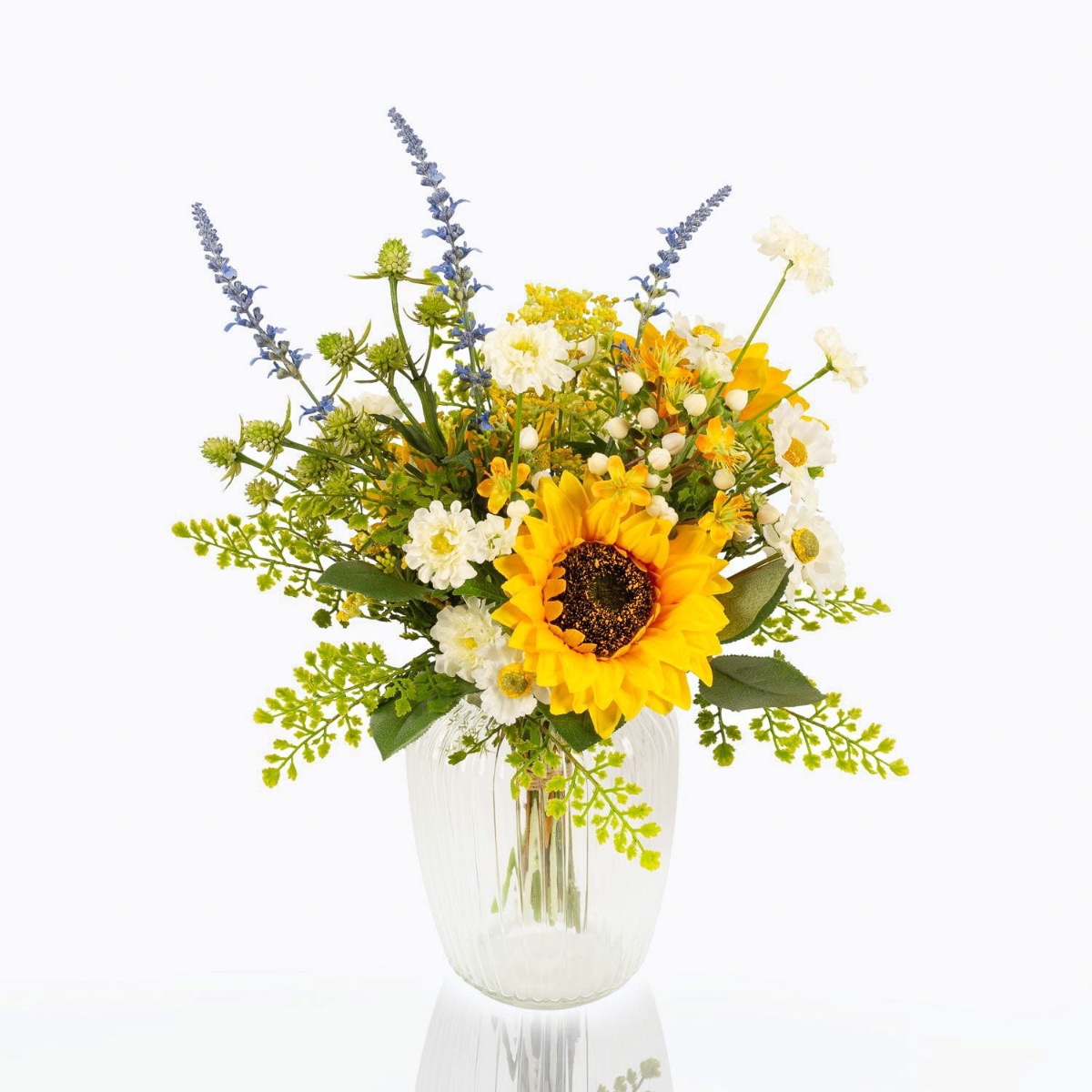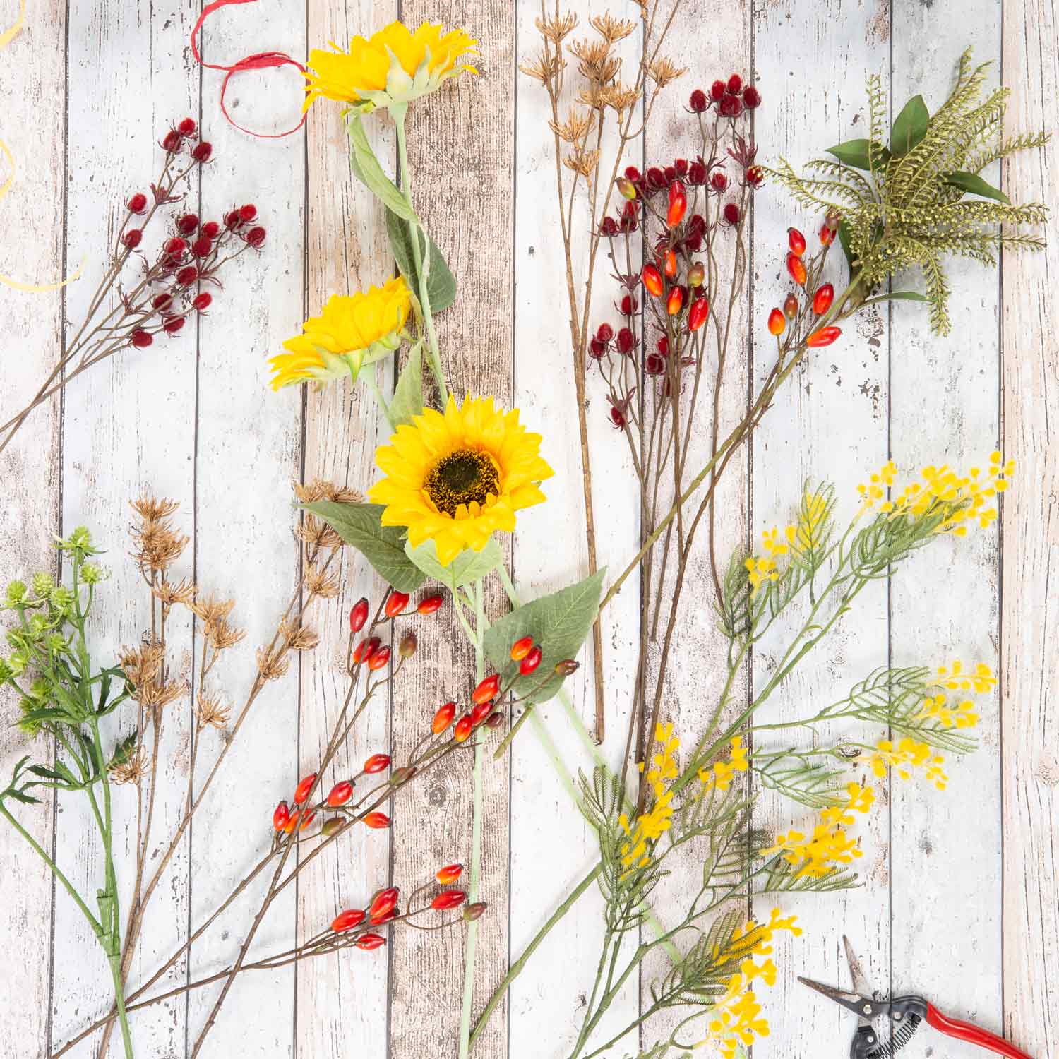 Umělá podzimní kytice HELENA, slunečnice, žlutá, 40cm, Ø35cm