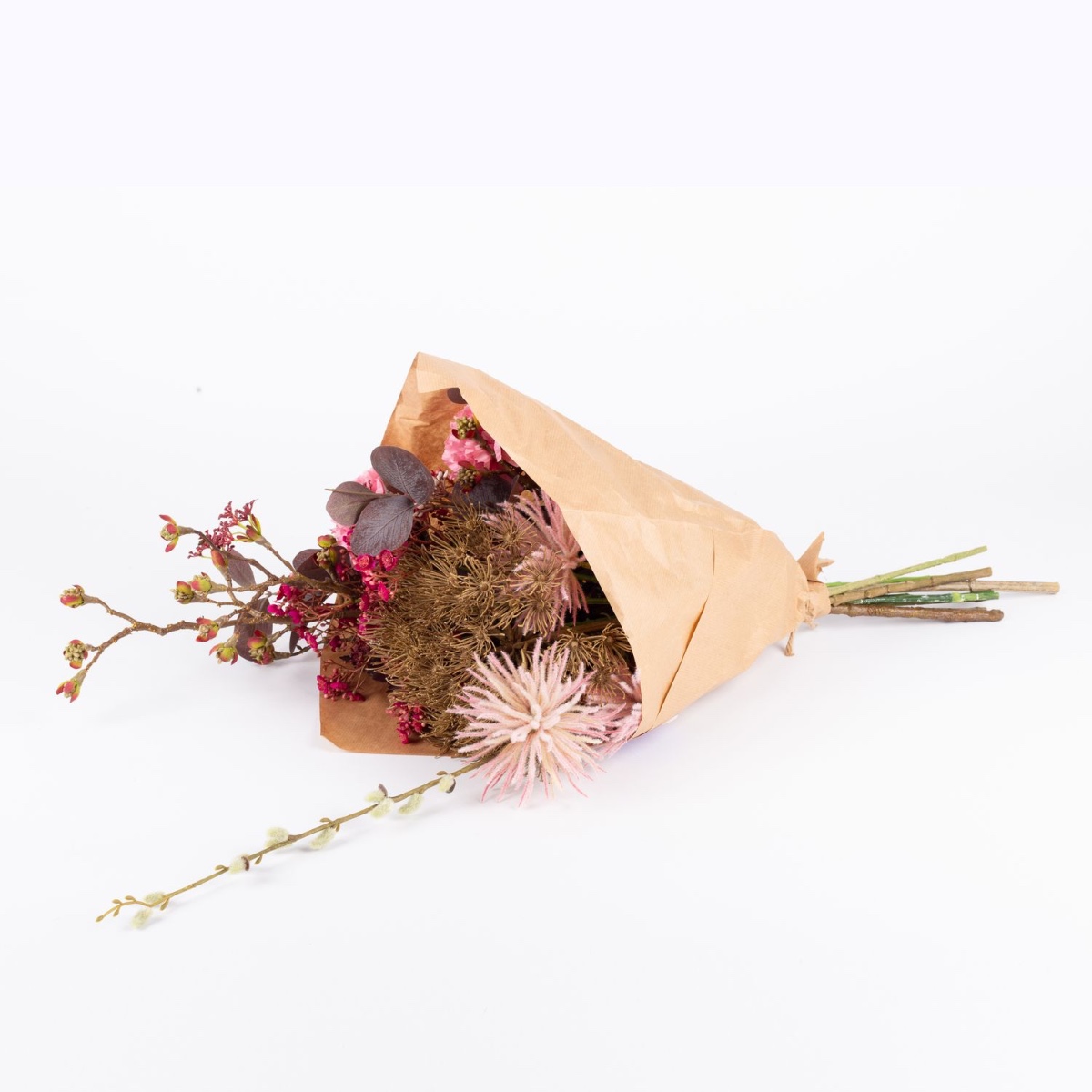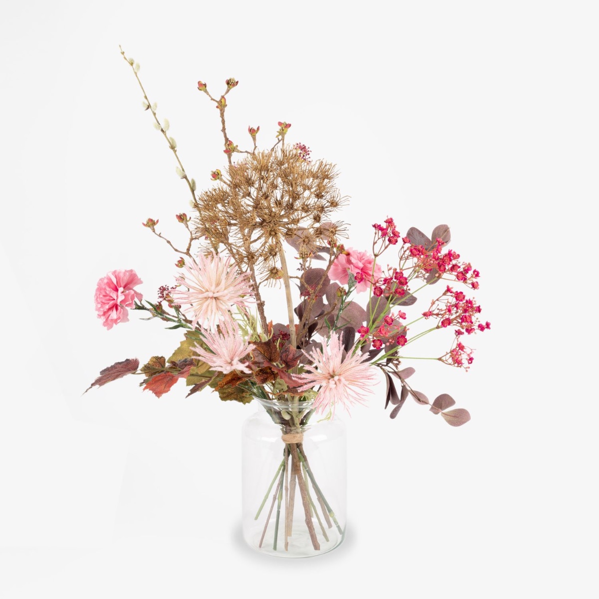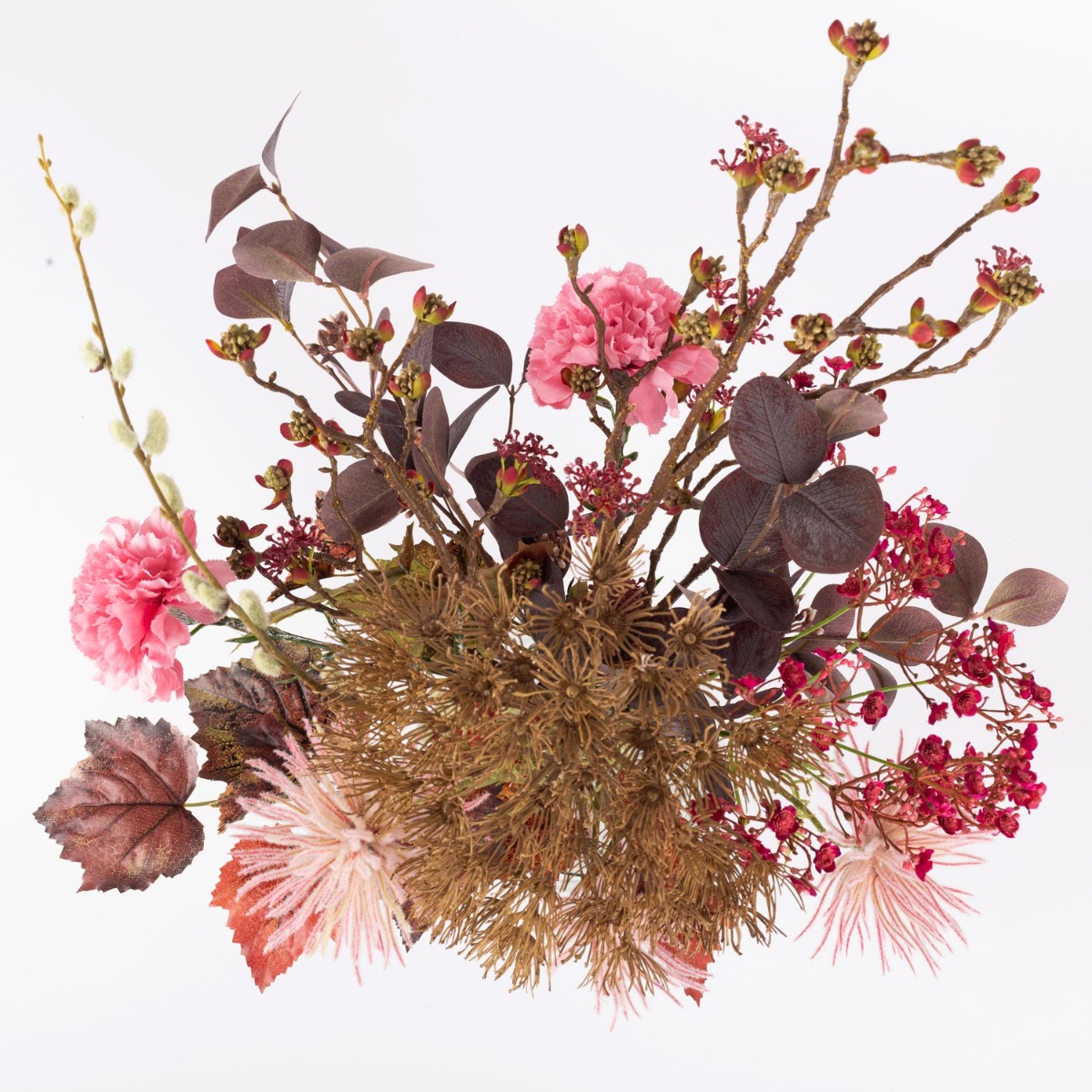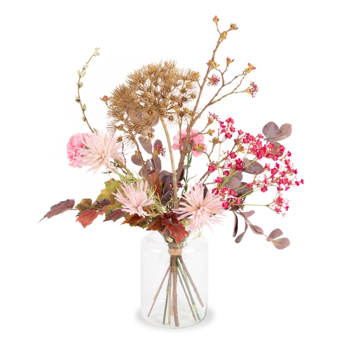 Umělá podzimní kytice PHILLIS, růžovo-růžovo-hnědá, 65cm, Ø40cm