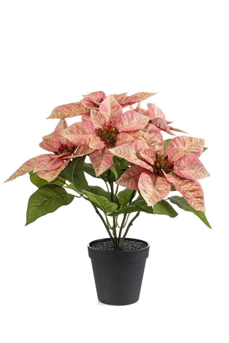 Umělá poinsettie GRULEN v dekorativním květináči, broskvová, 40cm