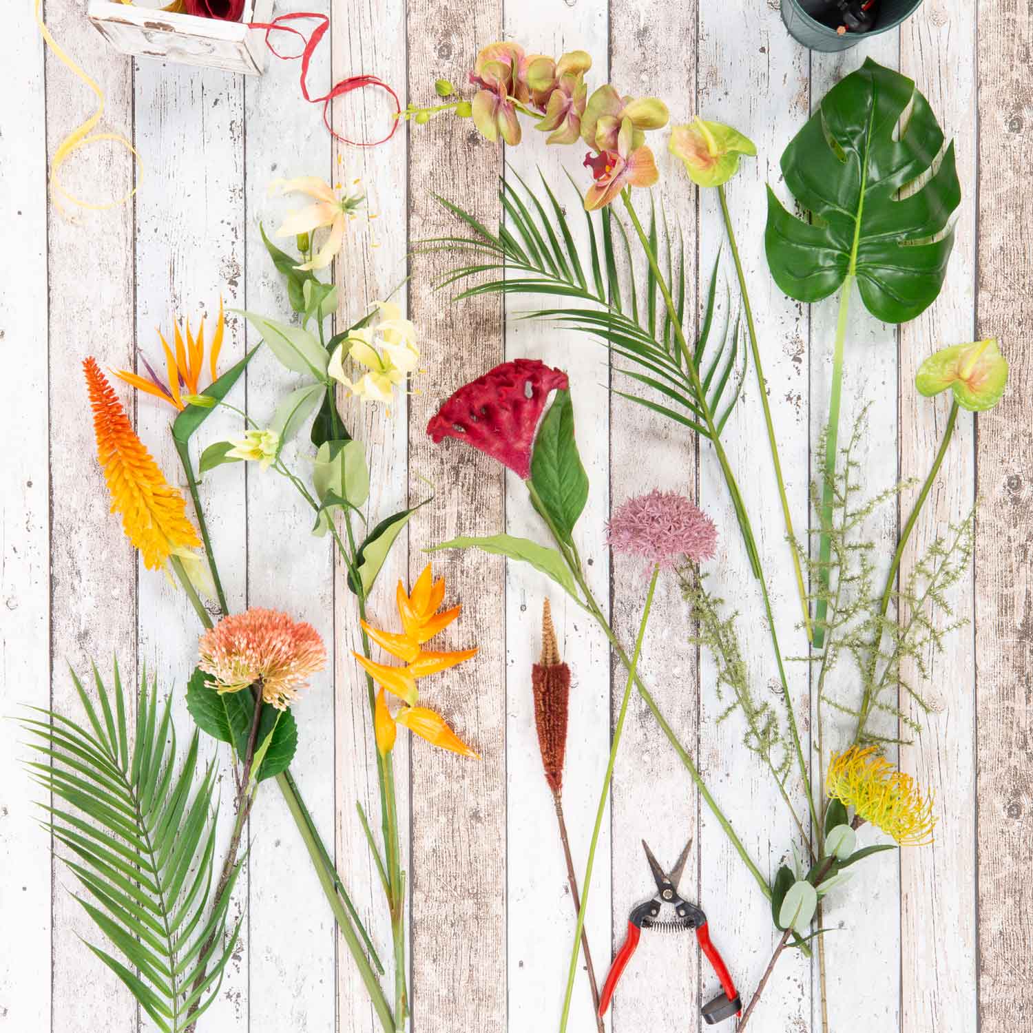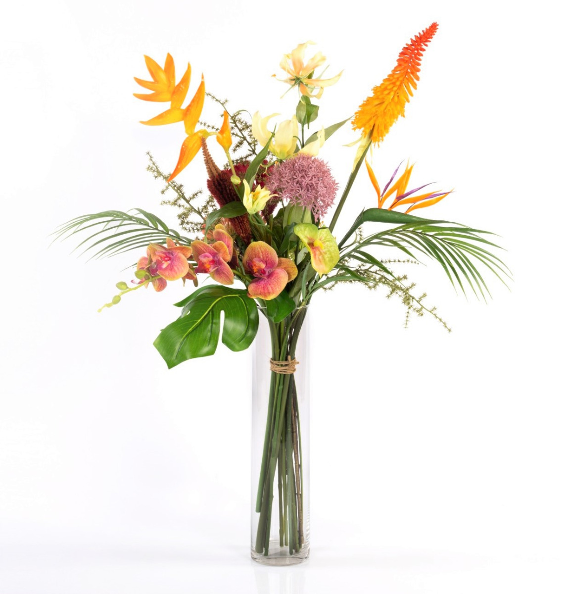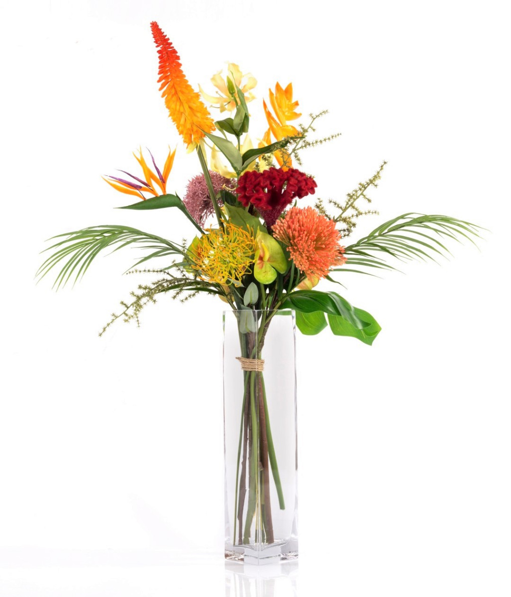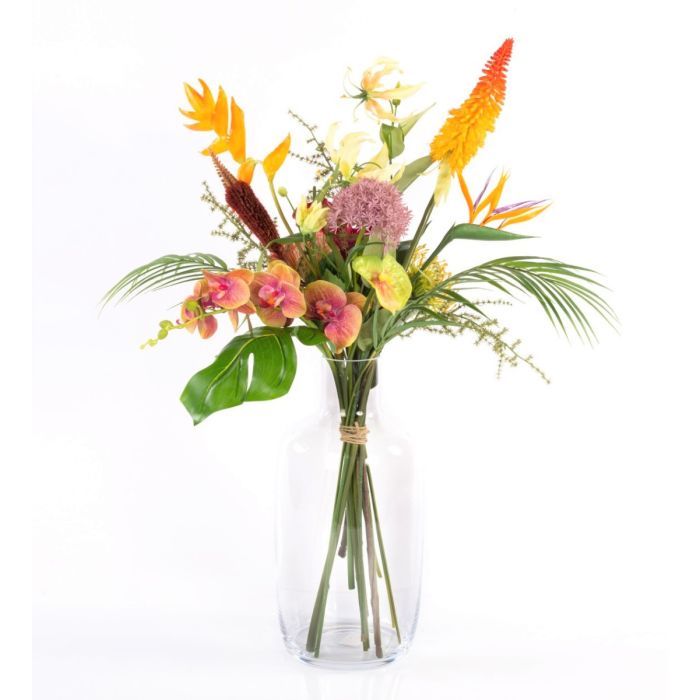 Umělá rajská kytice OHANA, Orchidej, Heliconia, barevná, 85cm, Ø50cm