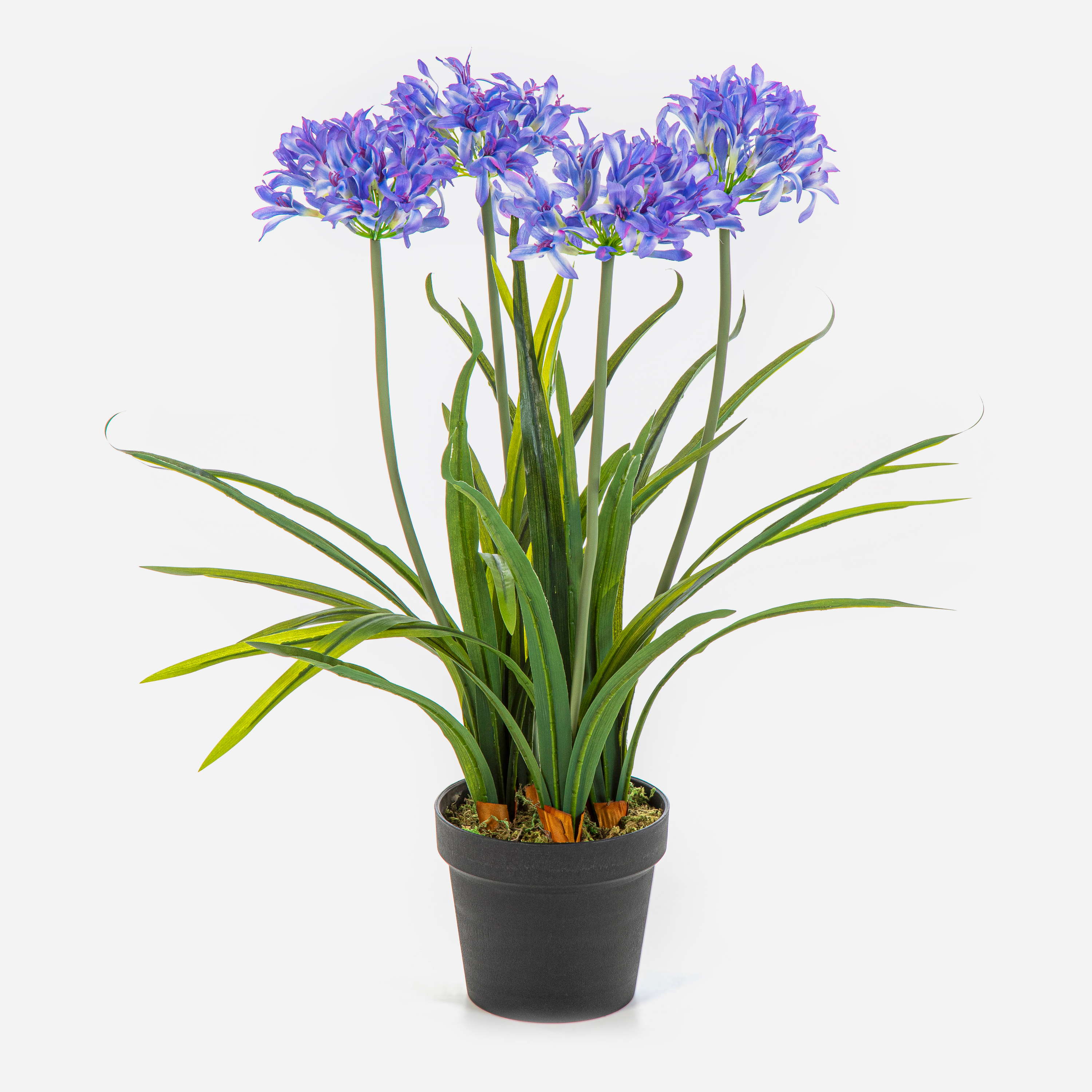 Umělá rostlina Agapanthus LESEDA v ozdobném květináči, modrá, 65cm