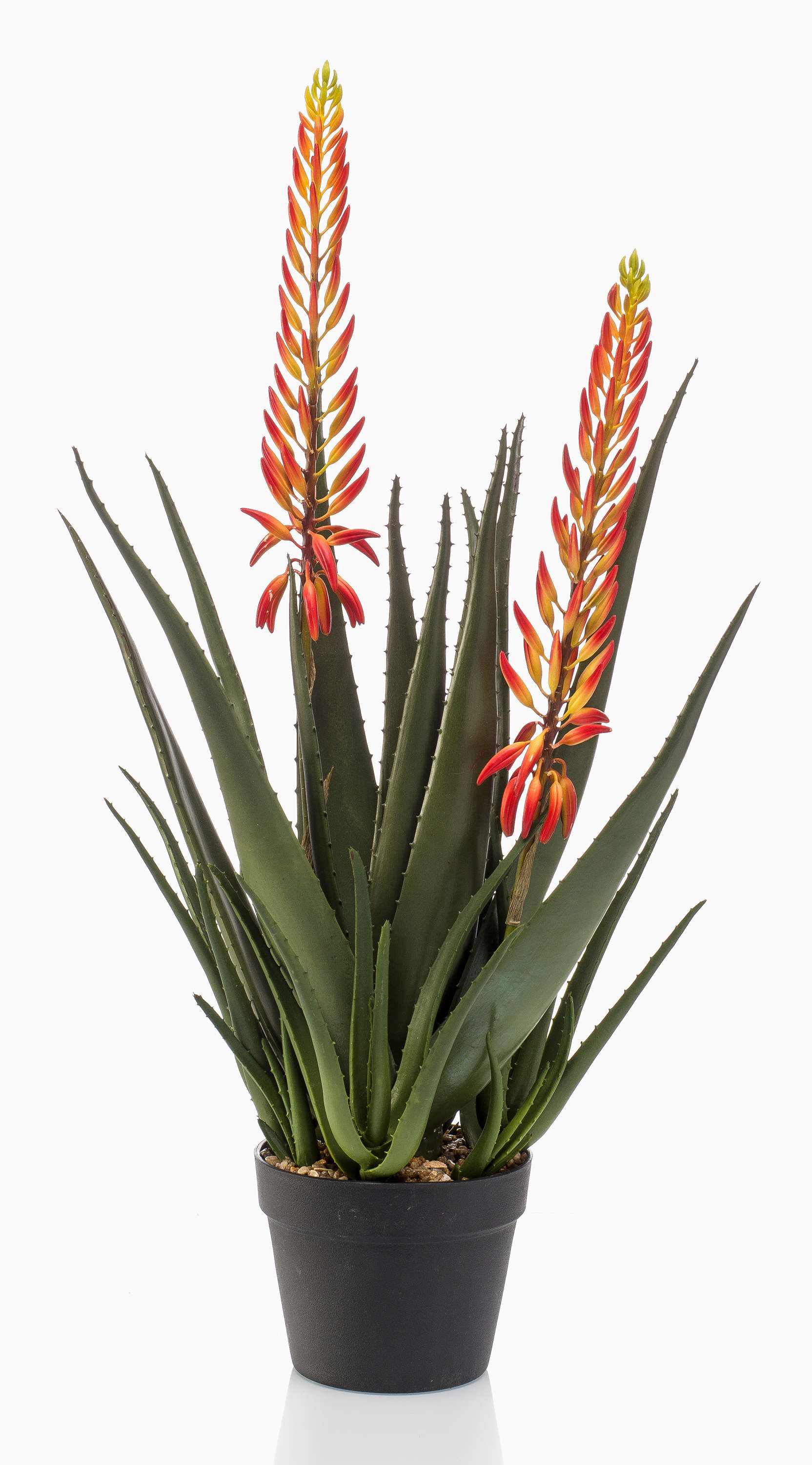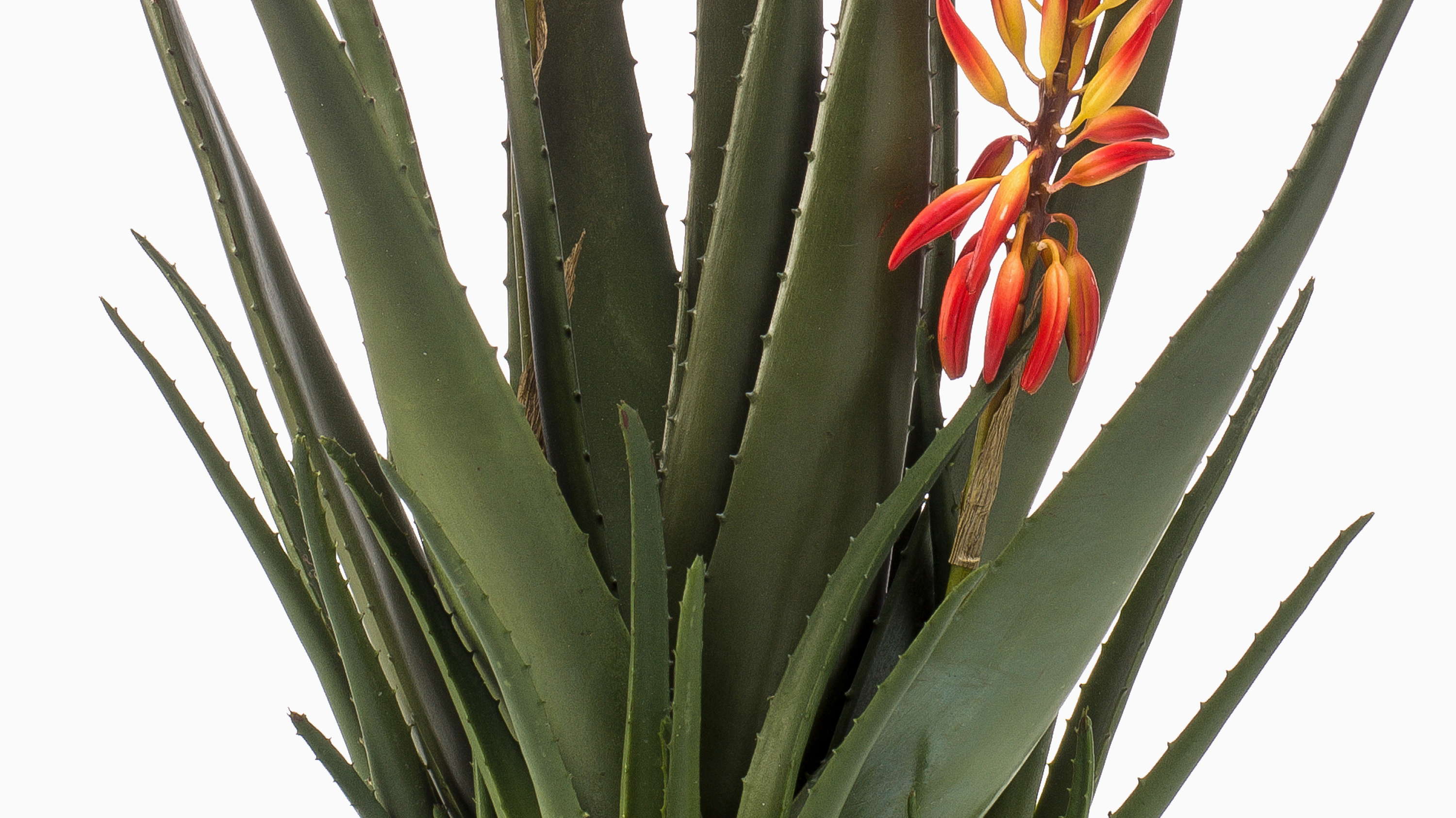 Umělá rostlina aloe vera SUSUMI s květy, dekorativní květináč, oranžovo-zelená, 80cm