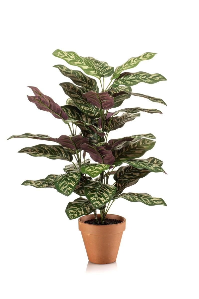 Umělá rostlina Calathea makoyana TROGAR v terakotovém květináči, zelenofialová, 65cm
