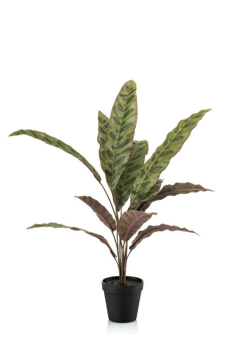Umělá rostlina Calathea Makoyana WIDO v dekorativním květináči, zeleno-vínově červená, 60cm