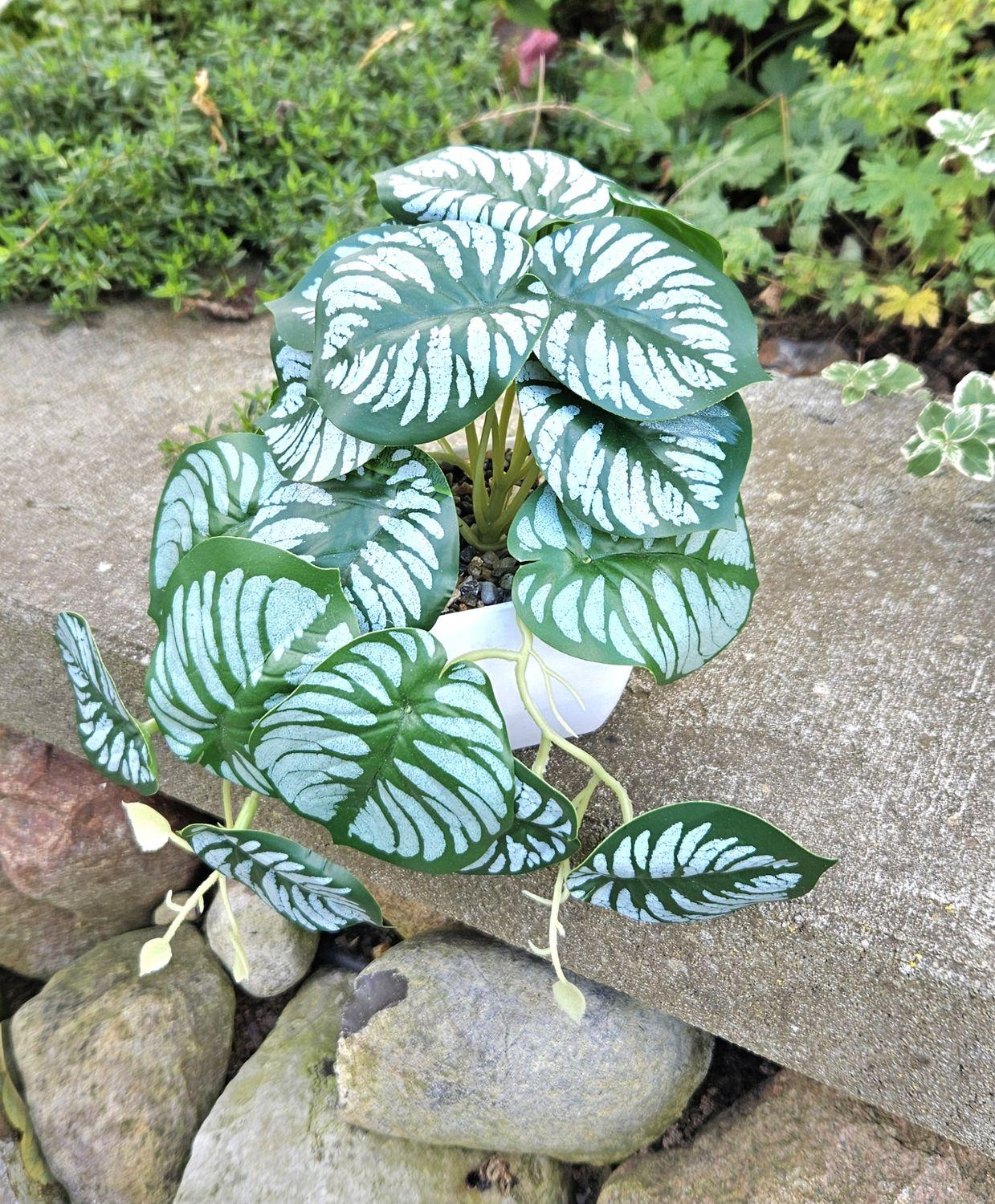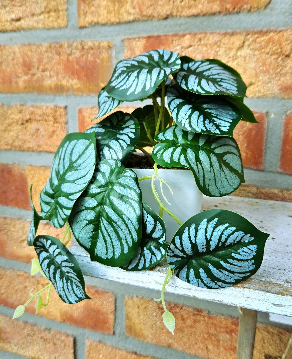 Umělá rostlina Calathea Orbifolia SOLINDA, dekorativní květináč, závěsná, 17cm