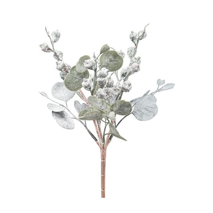 Umělá rostlina eukalyptus ZORHEN, tyč, plody, zmrzlá, zelenošedá, 28cm