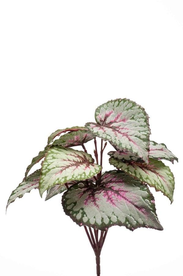 Umělá rostlina list begónie BLAROM, na tyči, křížová dvířka, šedorůžová, 25cm