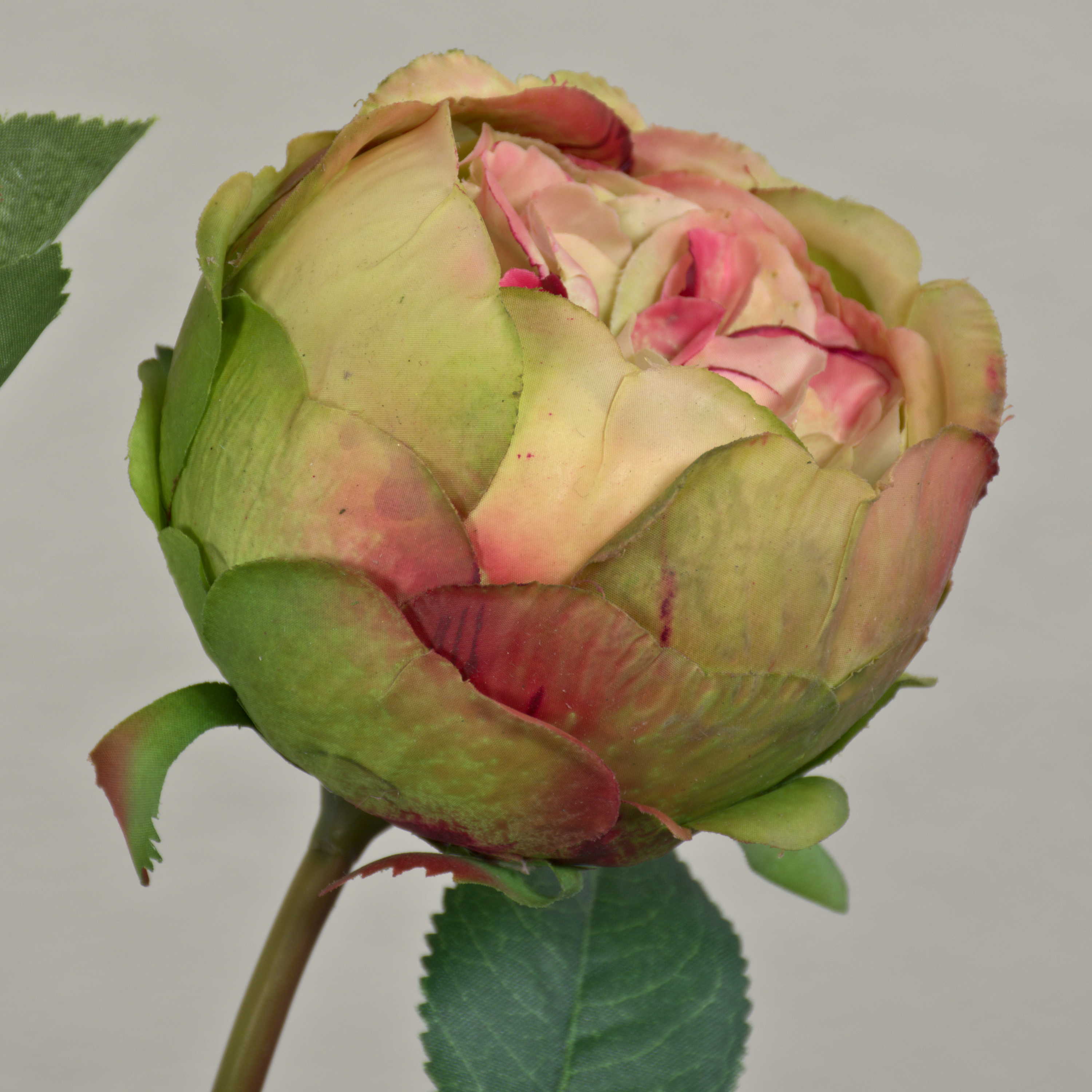 Umělá růže stolistá MIRETTA, zeleno-vínová, 60cm, Ø3-9cm