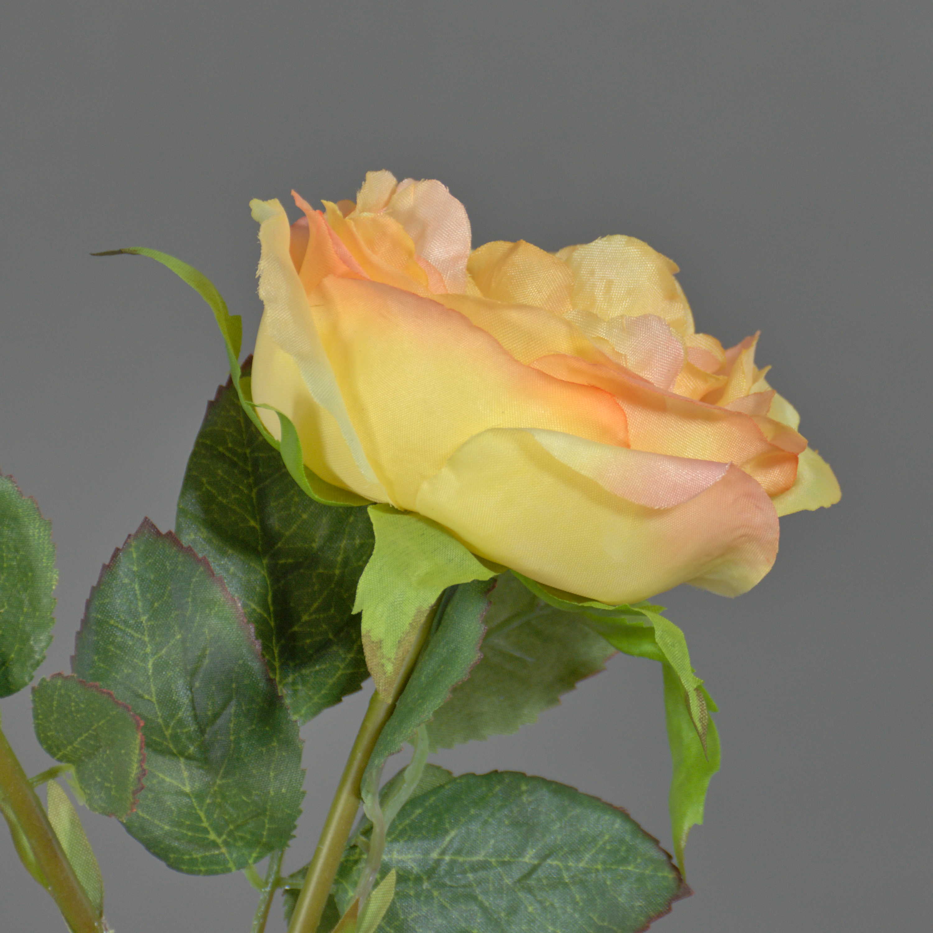 Umělá růže stolistá OLIVERA, žluto-meruňková, 30cm, Ø9cm