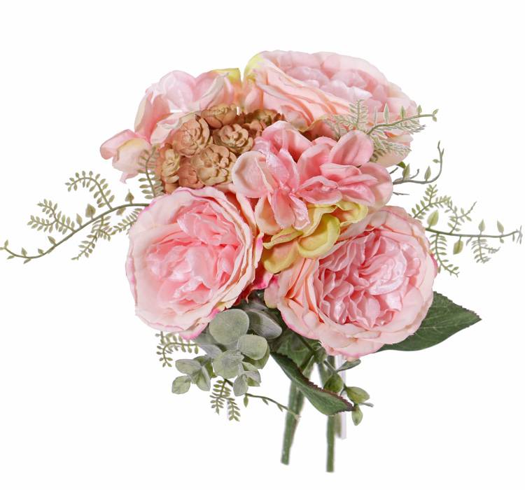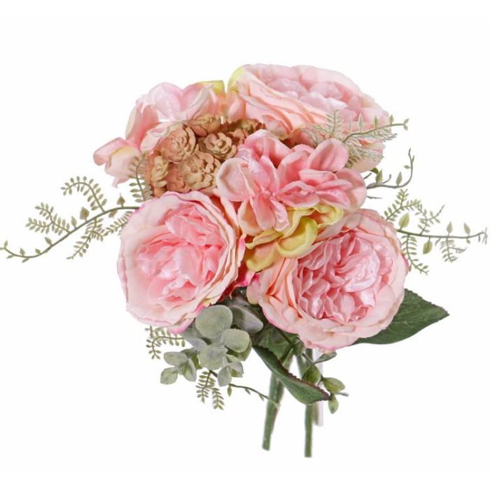 Umělá růžová kytice SIERRA hydrangea echevérie, růžová, 25cm, Ø25cm