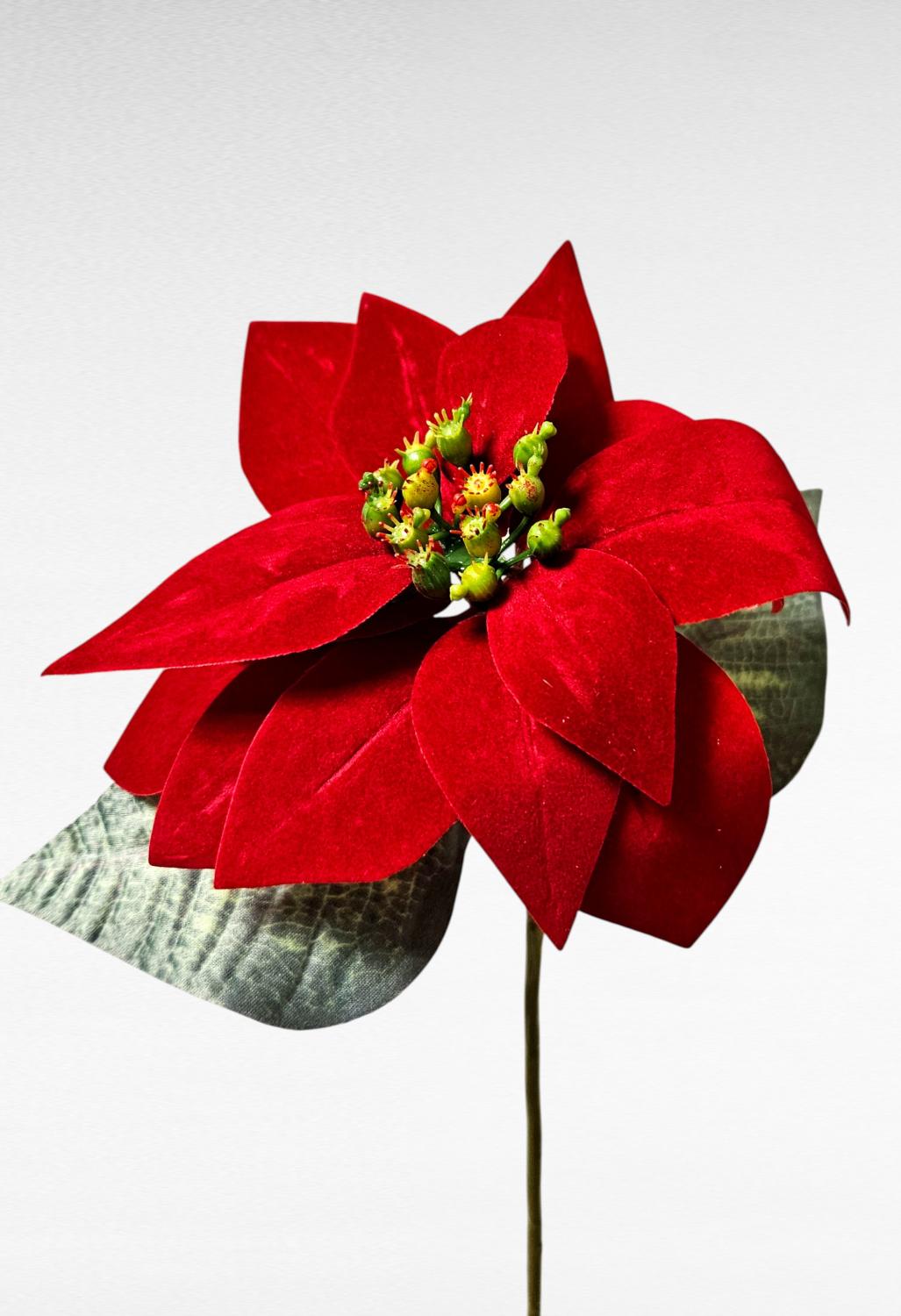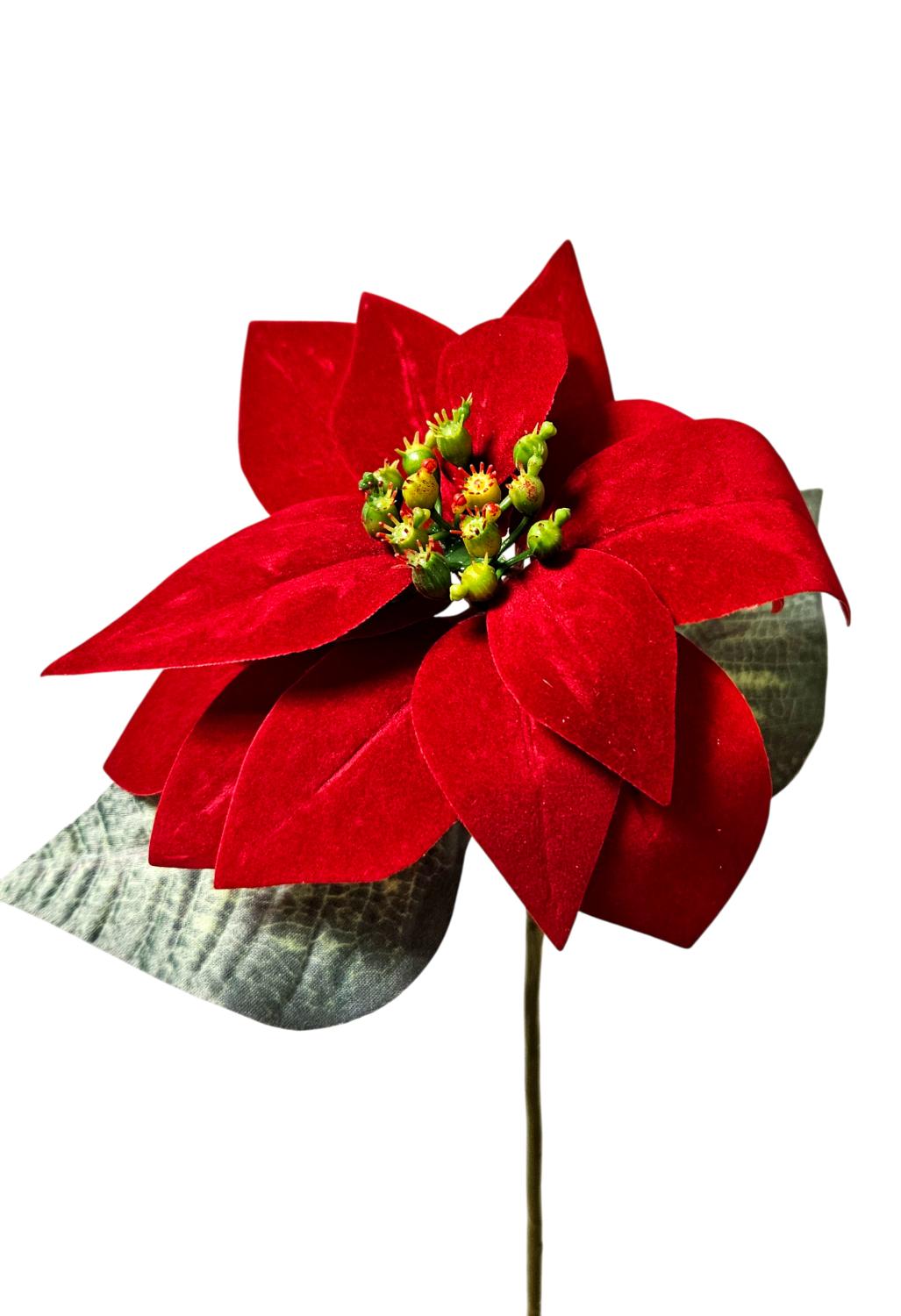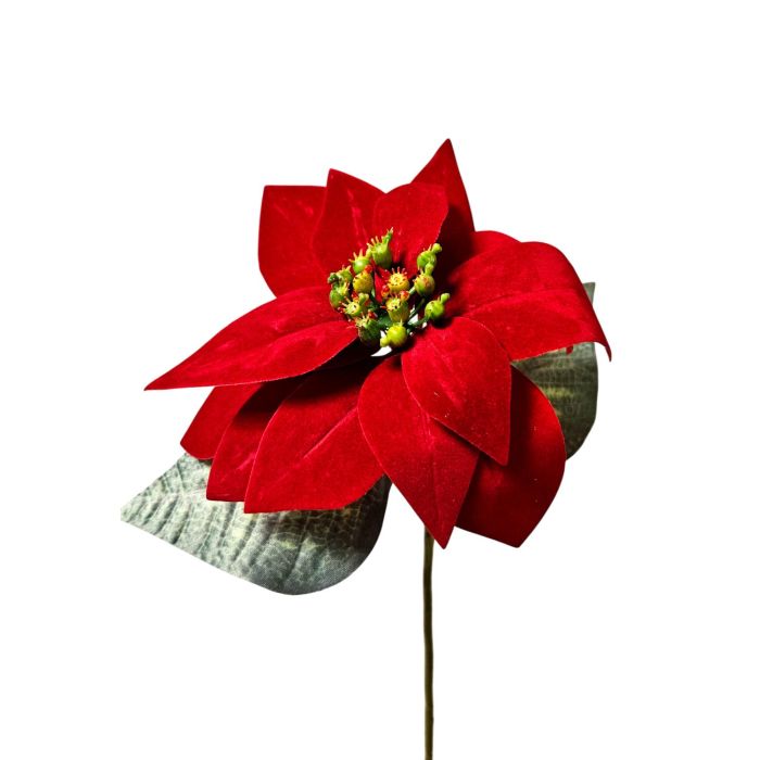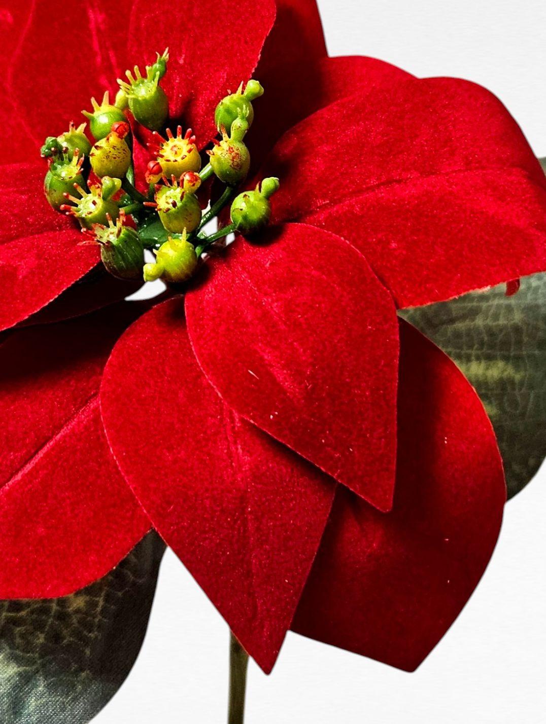 Umělá sametová poinsettie LIBASSE, červená, 45cm