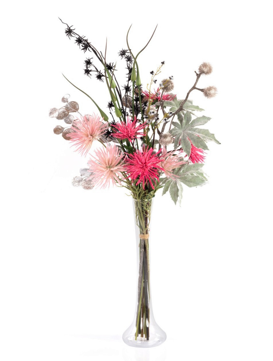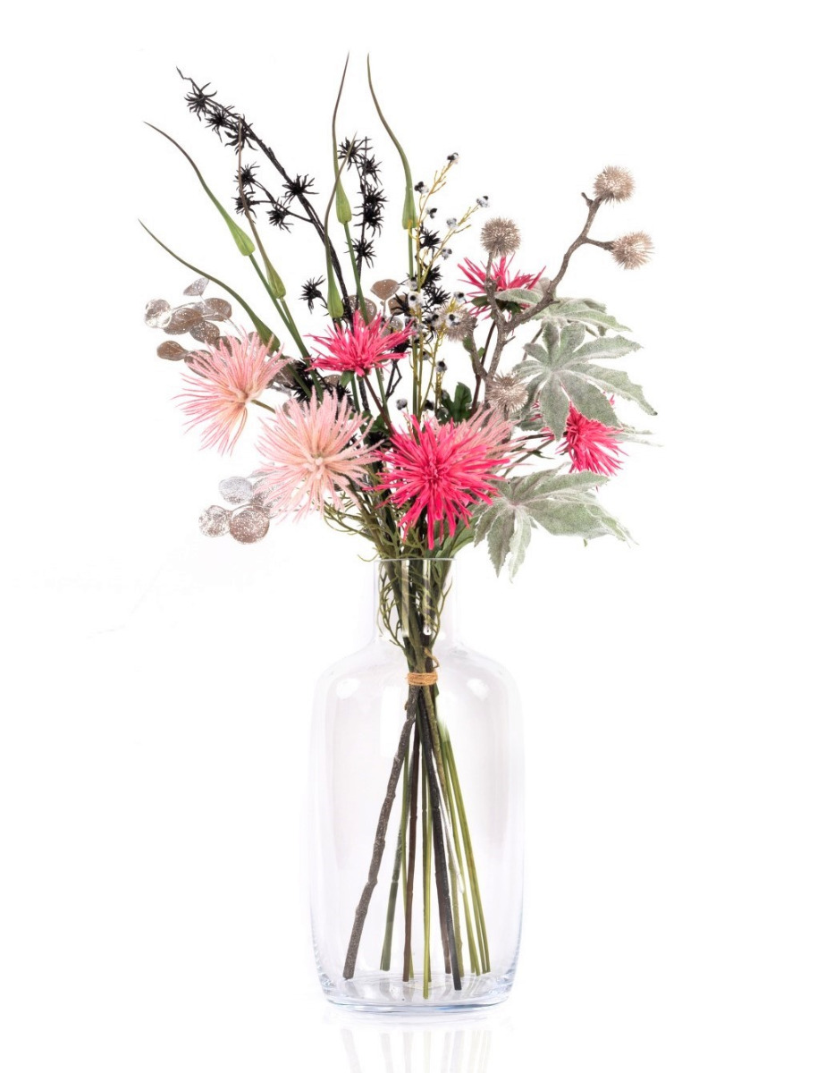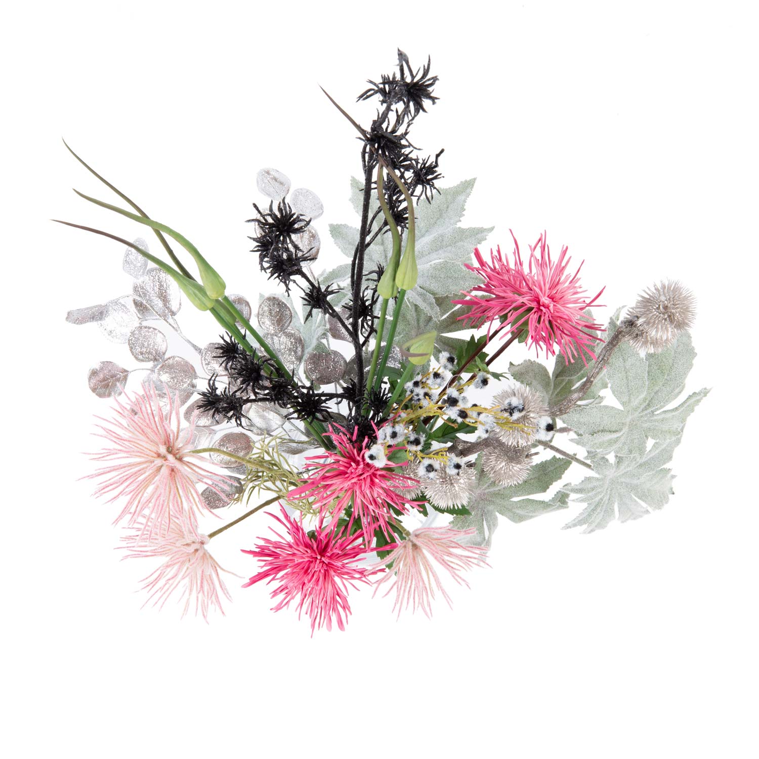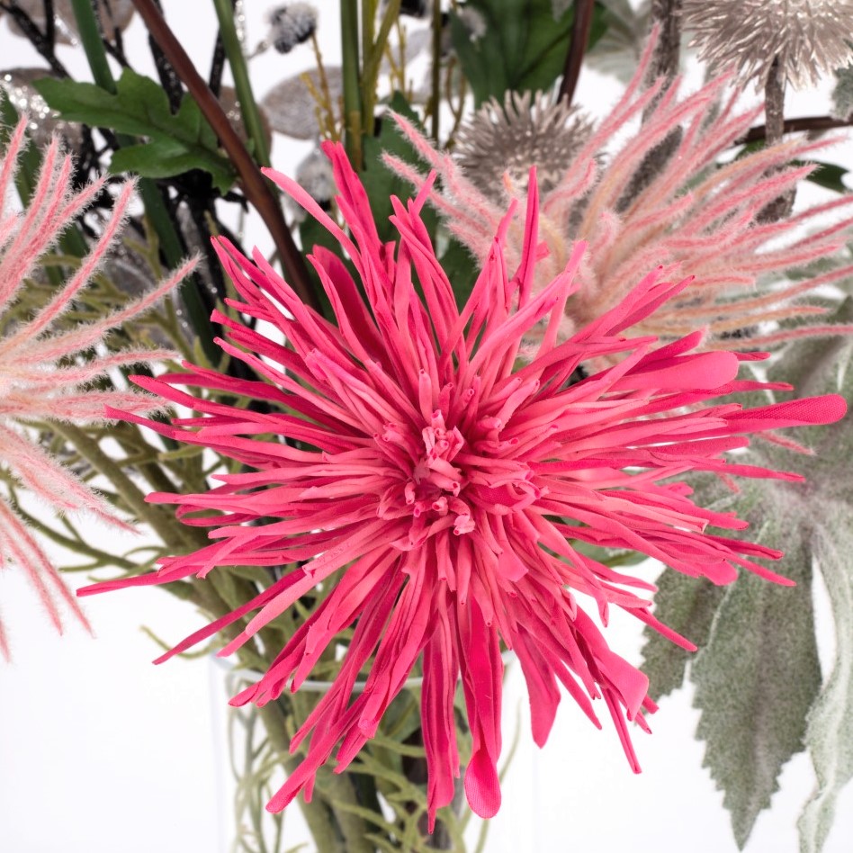 Umělá silvestrovská kytice KAAMI, chryzantéma, růžovo-stříbrná, 90cm, Ø45cm