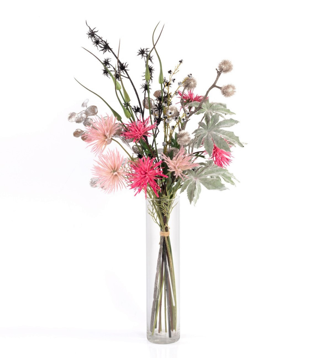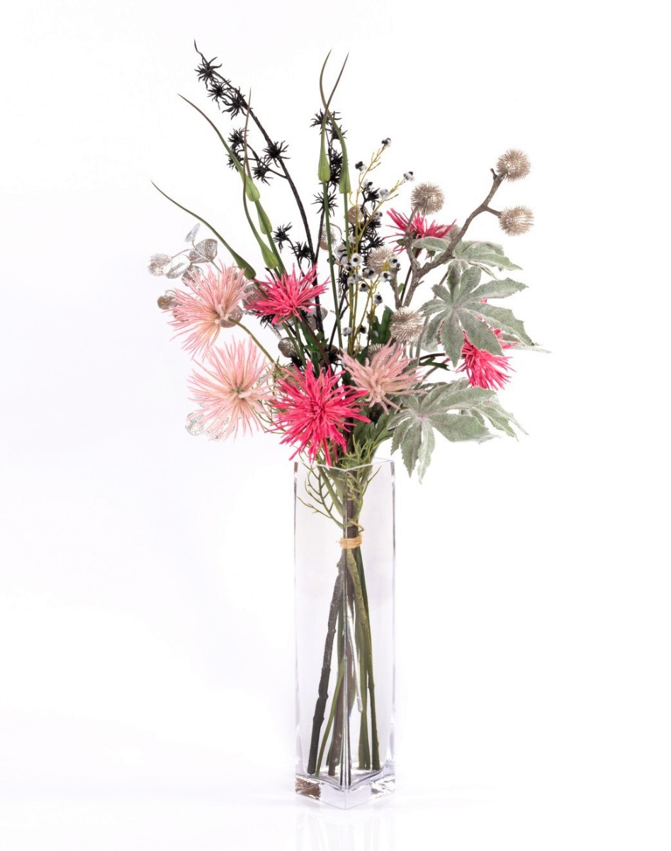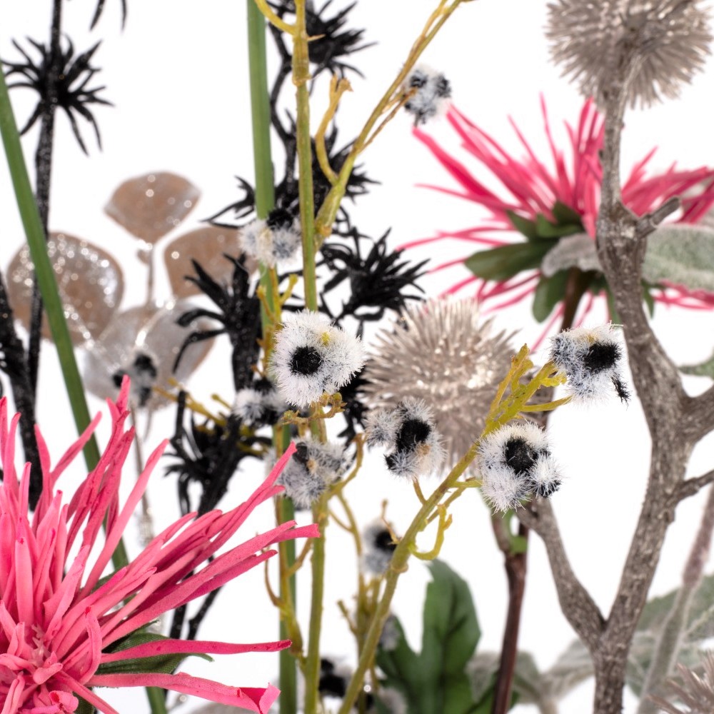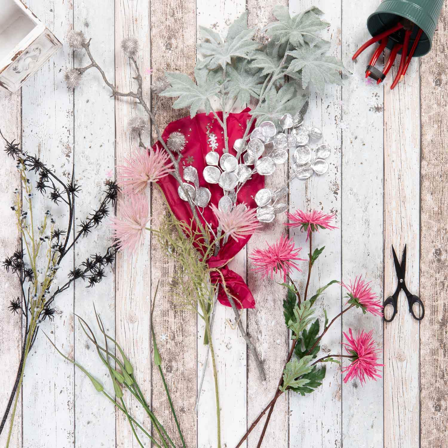 Umělá silvestrovská kytice KAAMI, chryzantéma, růžovo-stříbrná, 90cm, Ø45cm