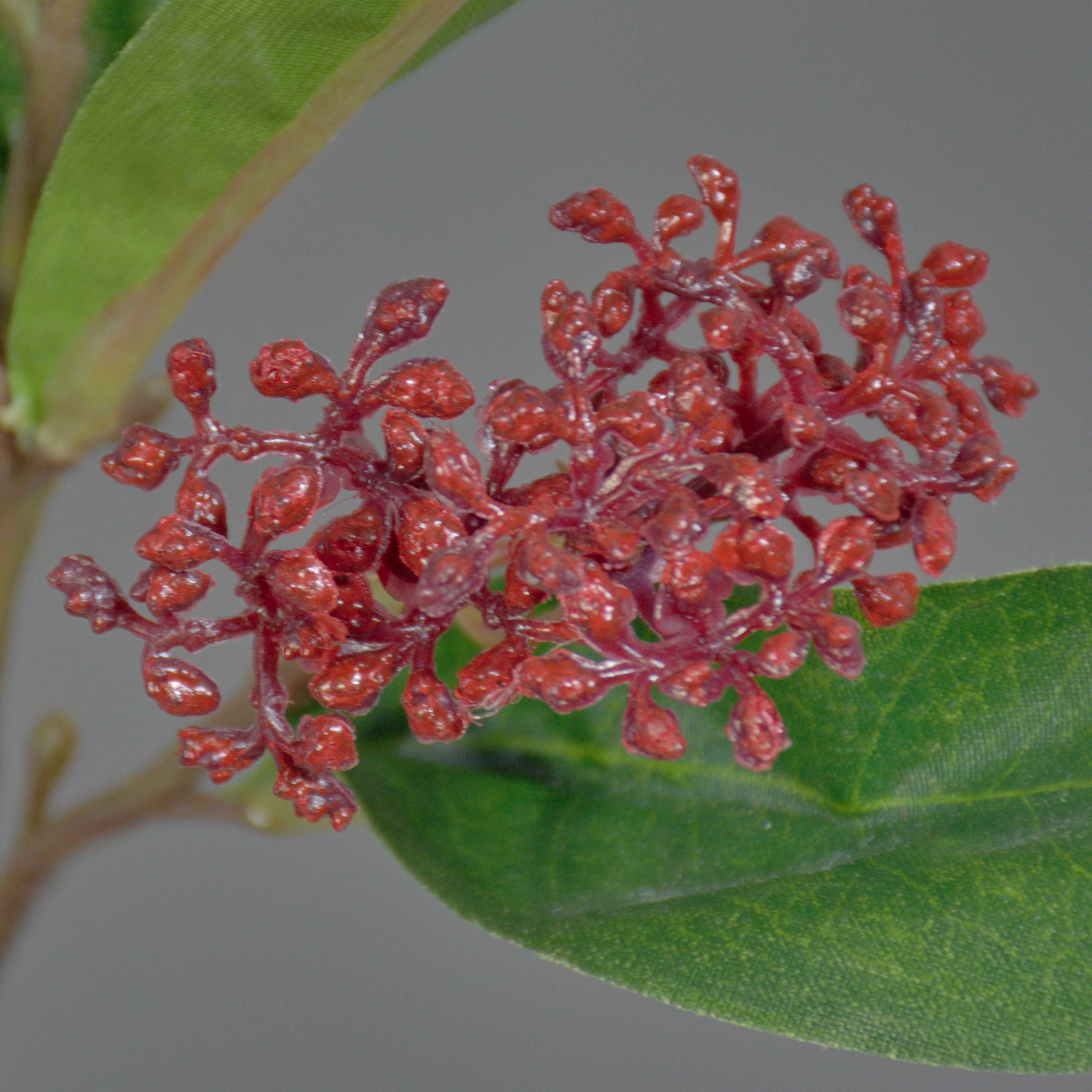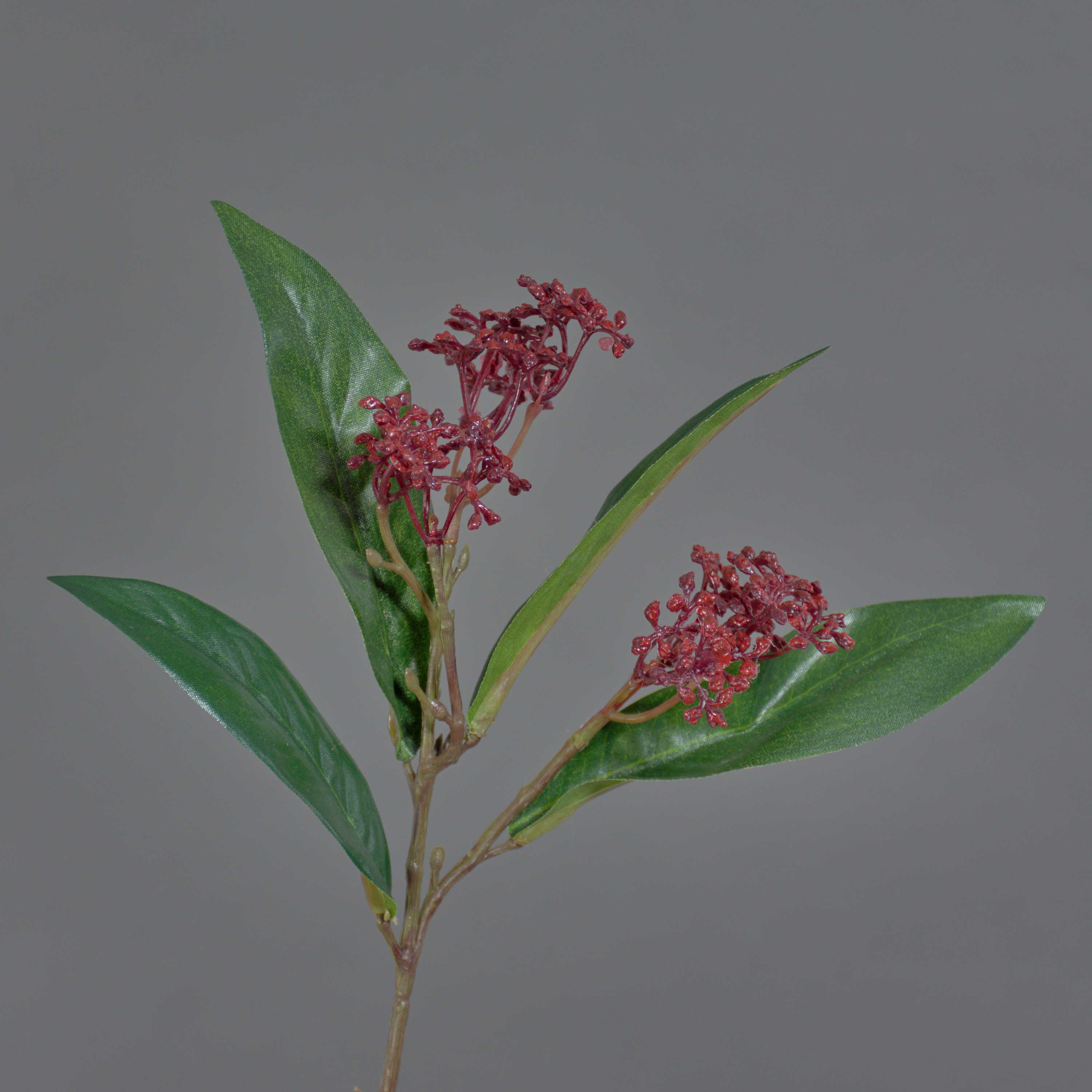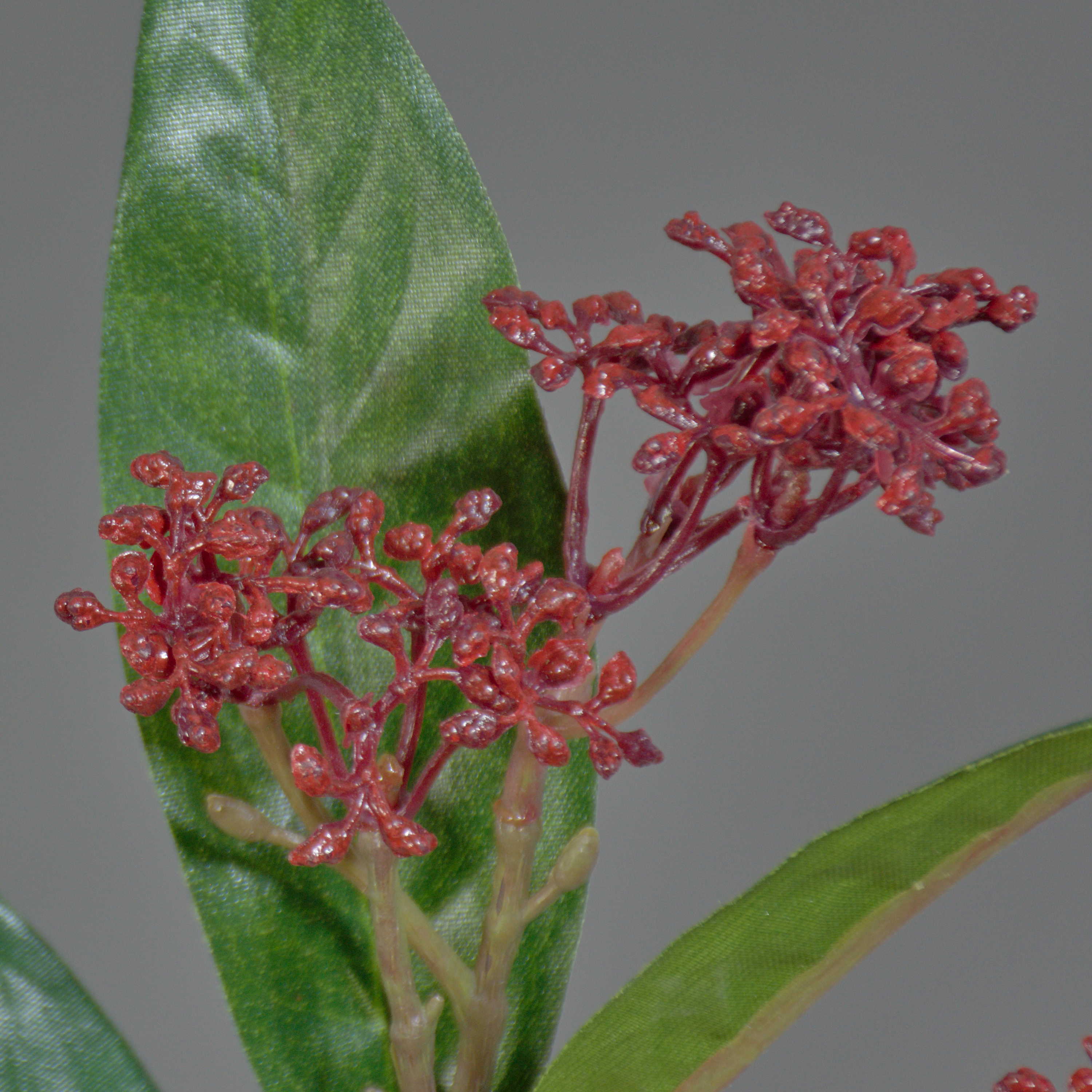 Umělá skimie japonská EBONY s květy, červená, 35cm