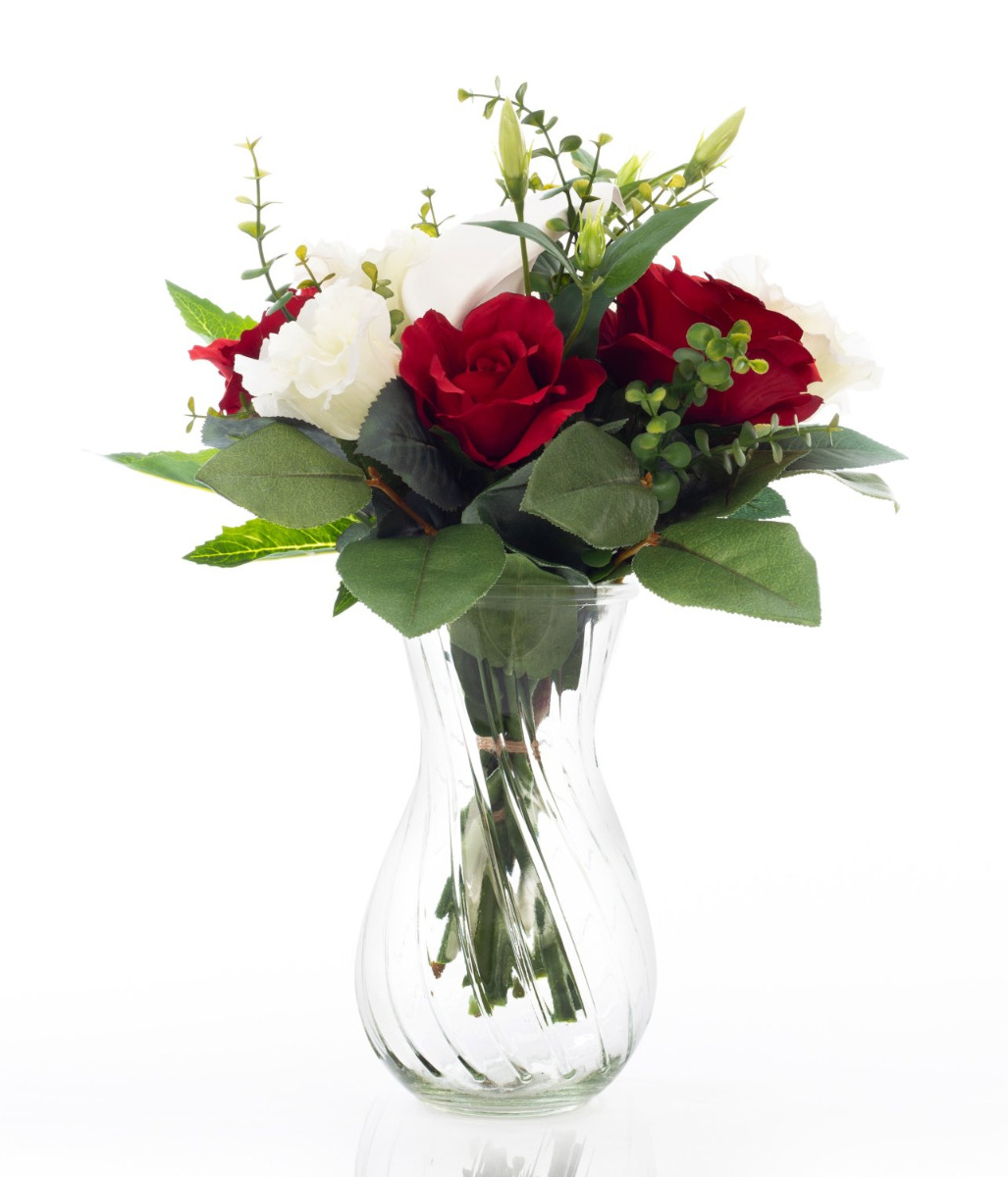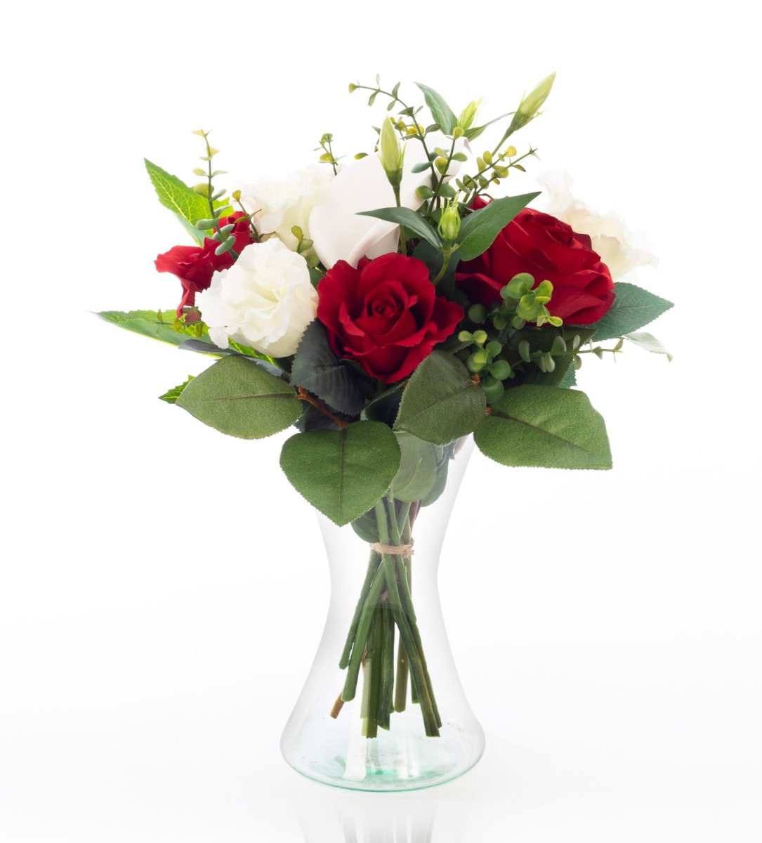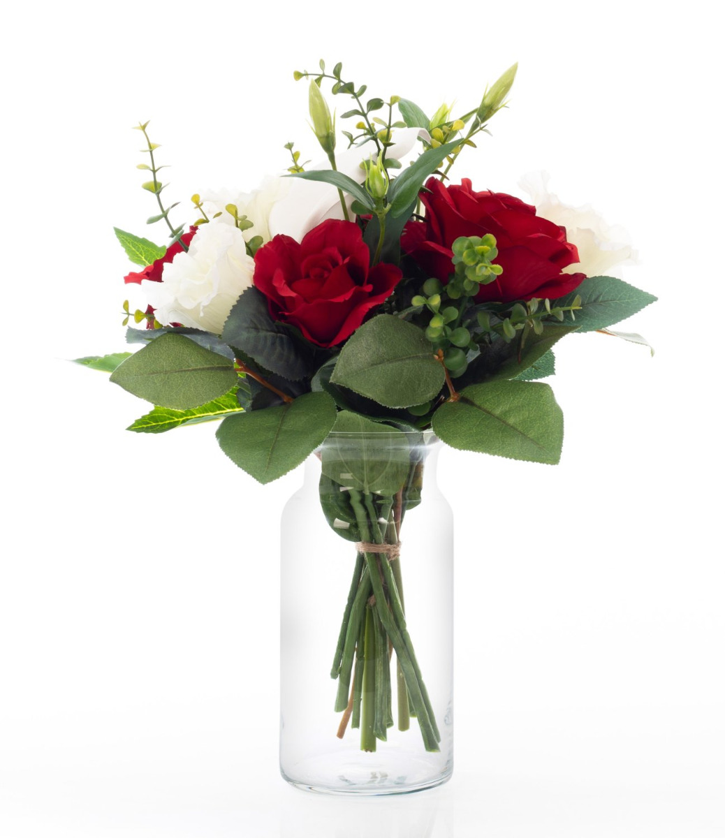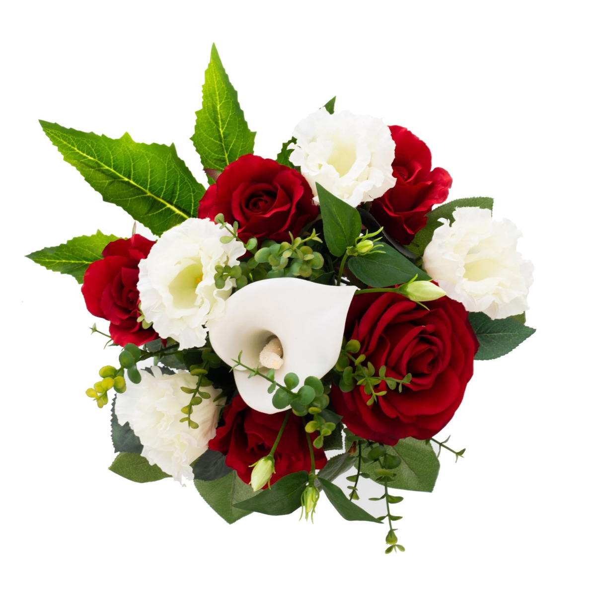 Umělá svatební kytice ELAYNA, červeno-bílá, 35cm, Ø30cm