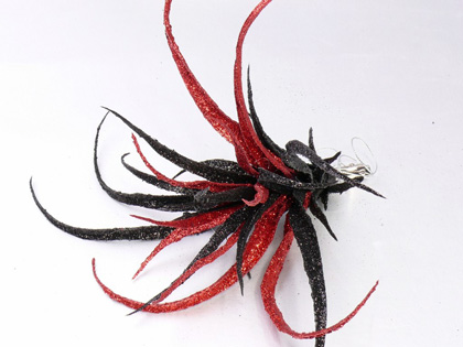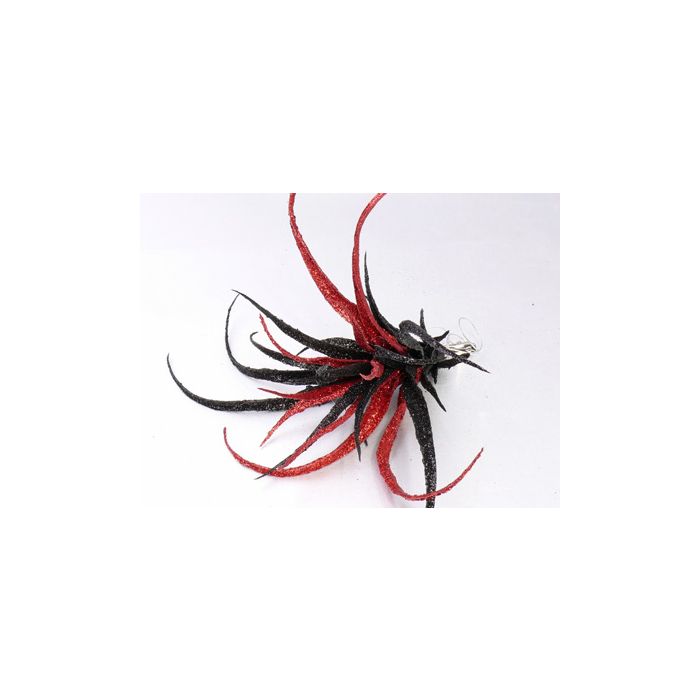 Umělá tillandsia stricta TESAK na klipu, třpytky, černo-červená, 17cm